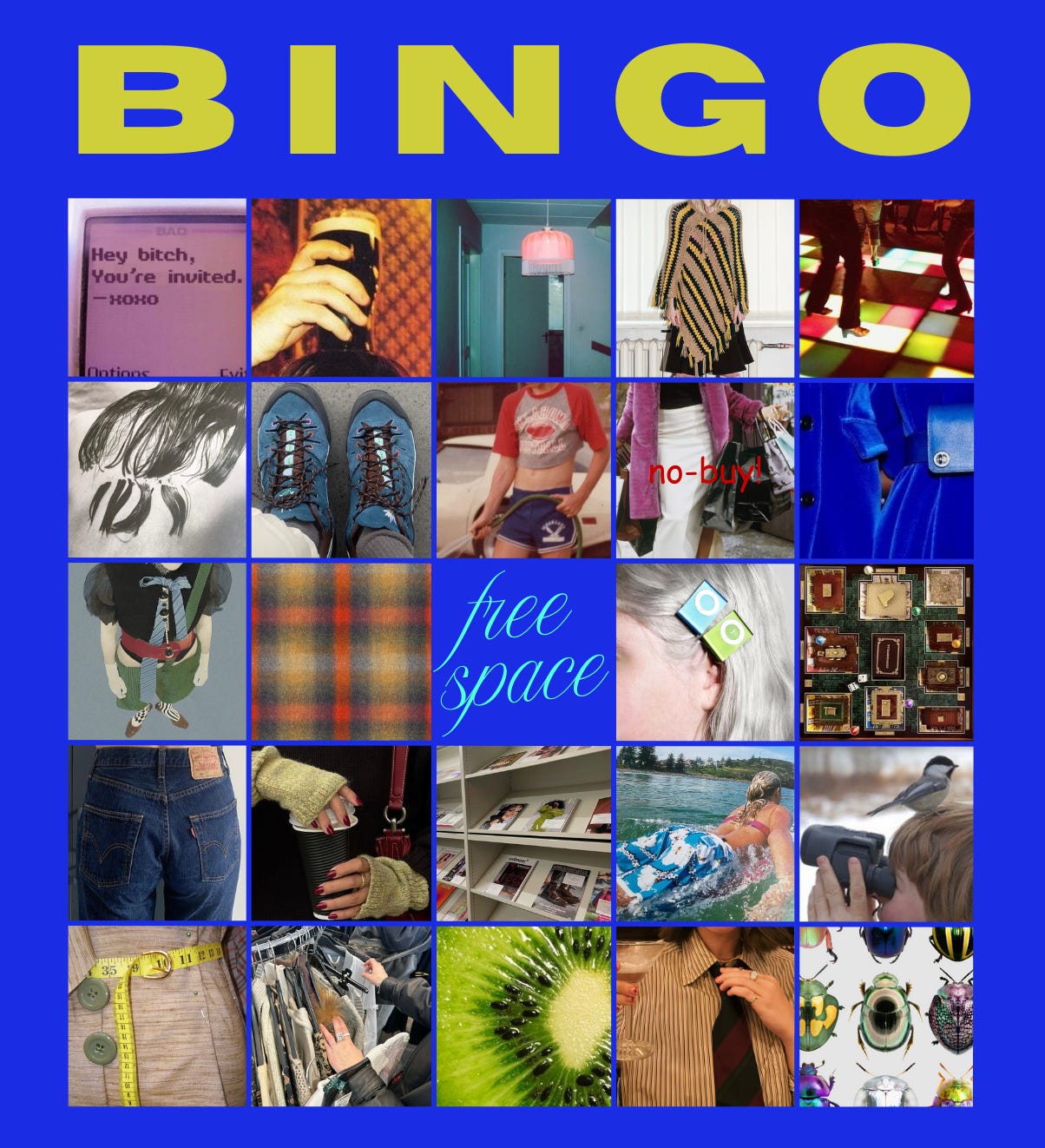 Because old school games are so in this year (see: Clue), I made a little game for us to play at home. I’ll be crossing a square out when I do or wear it myself, and/or if I see it in a major campaign or as part of a widespread trend. First one to BINGO wins a big kiss!