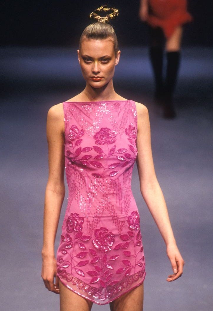 Bobbed and baby-faced 16-year-old Adriana Lima knows how to do a birthday dress. This Blumarine f/w 1997 hot pink sequin number might just be the most Birthday dress of all time.