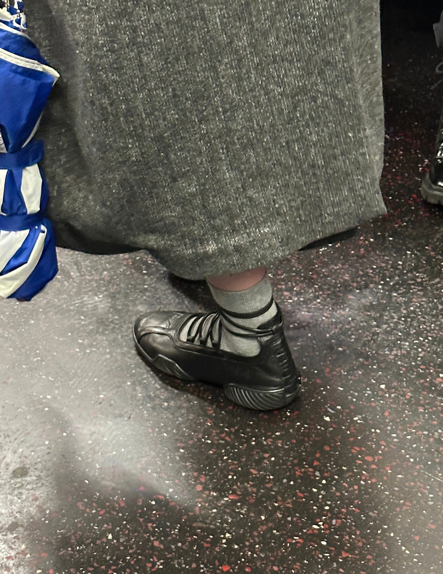 And the queen of the R train opts for strappy leather flats over glass slippers. These Miista ballerinas are making a serious argument for ballet flats as winter shoes, and I might be digging out my summer sandals as we speak.