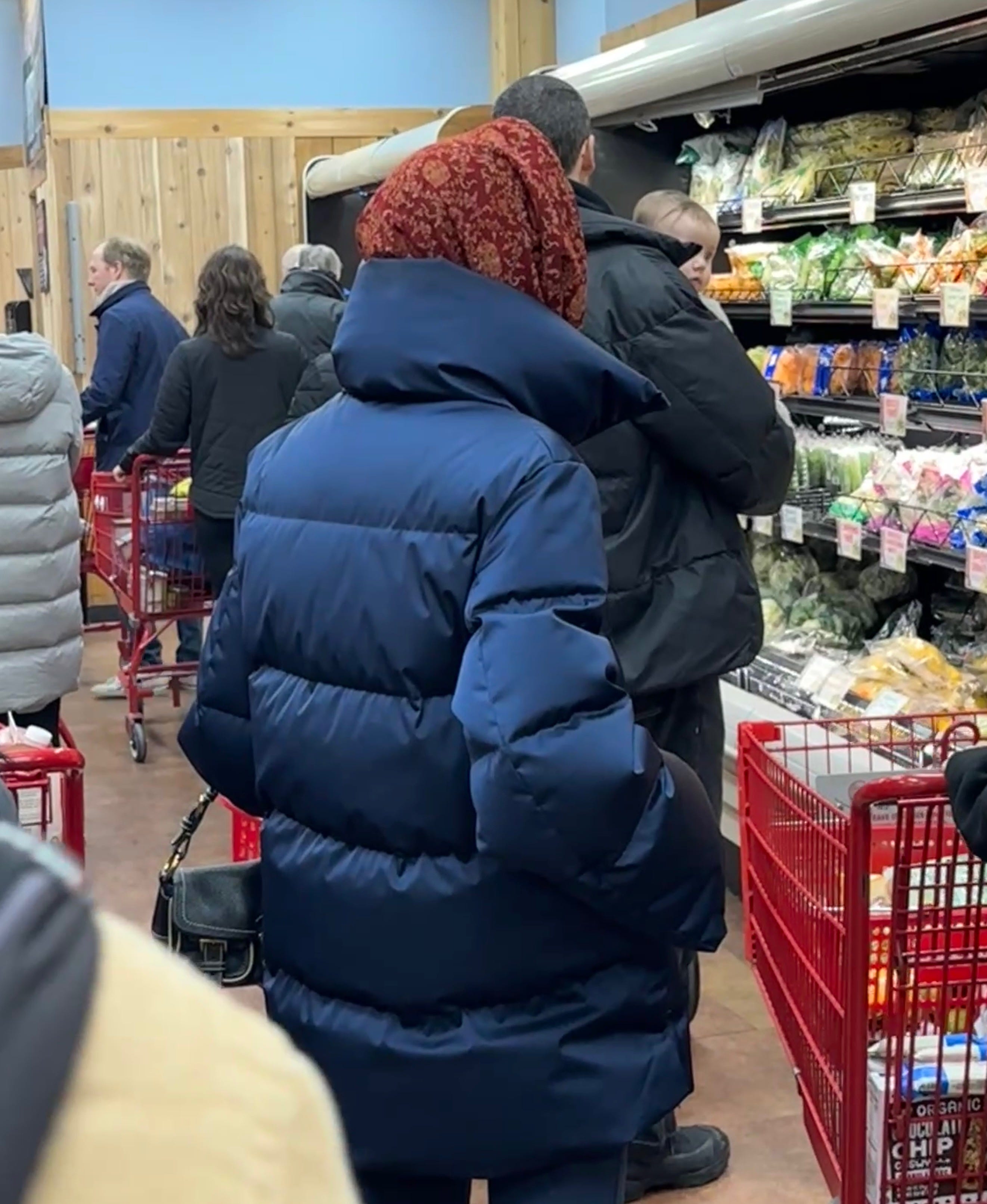 The veggie aisle of Trader Joe’s is but a runway. This old woman was on a mission to raise the puffer’s coolness ceiling — high collar, contrasting head scarf, and a little baguette to prove she means business. Mission successful, imo.