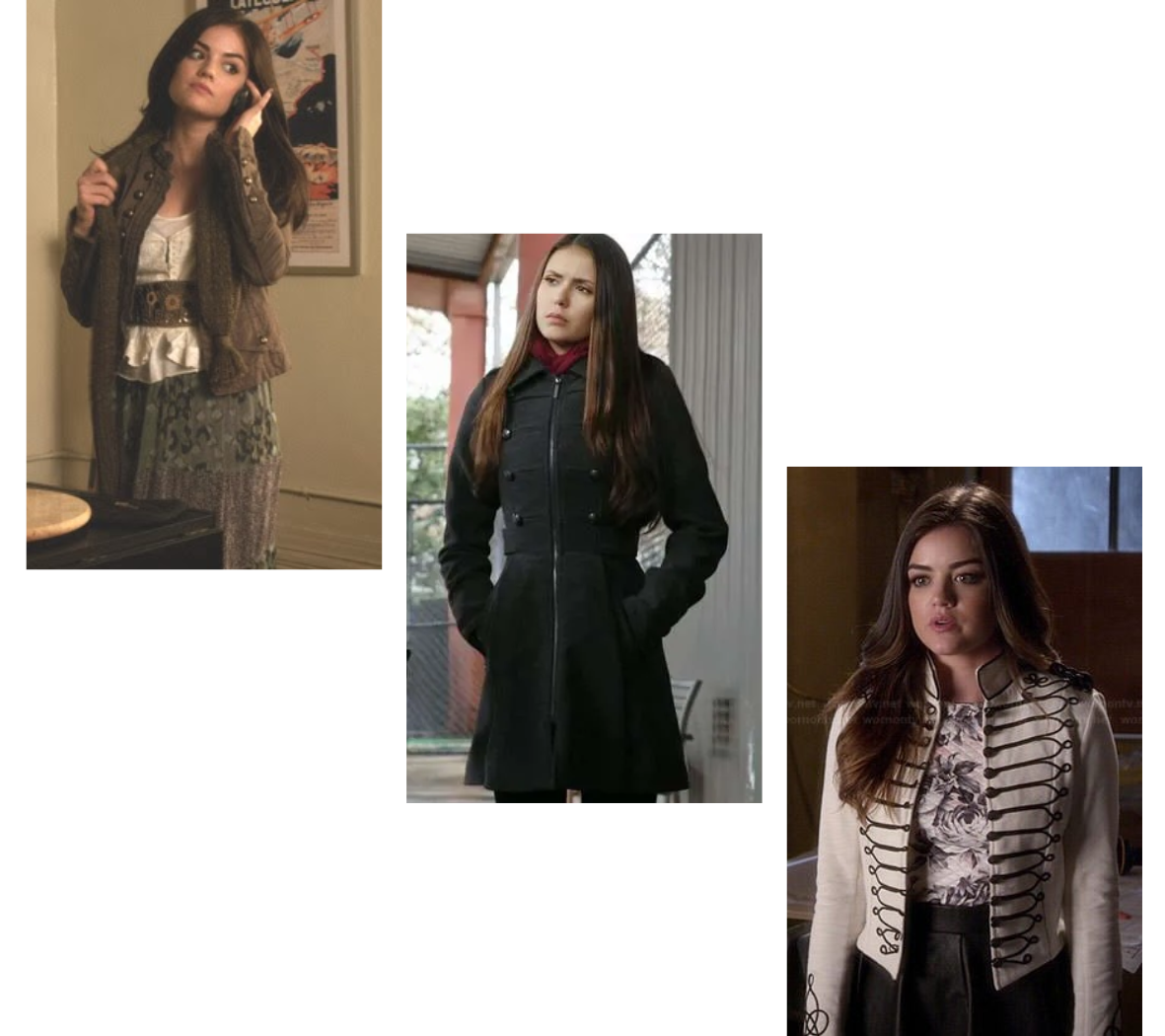 In addition to the retro rock star blueprint, I’m looking to the indie-sleeze-ish and twee-ish military jacket moments of the 2010s for wearable styling. It’s the Aria Montgomery Elena Gilbert of it all…