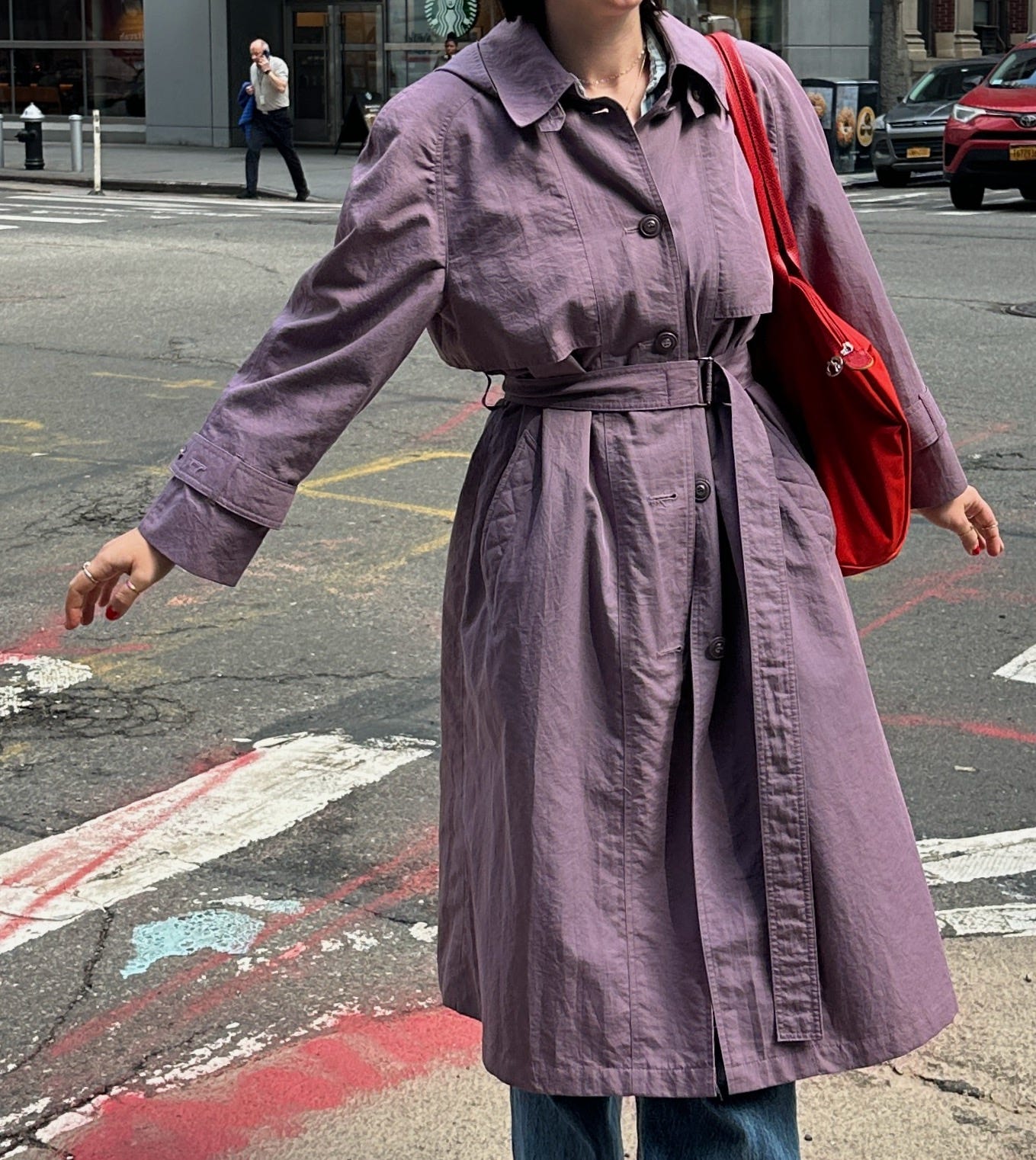It’s a lavender field of rain protection, a pop of purple on a dreary spring morning, and an airy layer perfectly suited for the humidity of April drizzle. I’m not sure when the coat was purchased, but I’d venture to guess somewhere in the ‘80s due to the shoulder pads I had to seam-rip out. I found a near exact replica (with a gorgeous paisley lining) for $25 here.