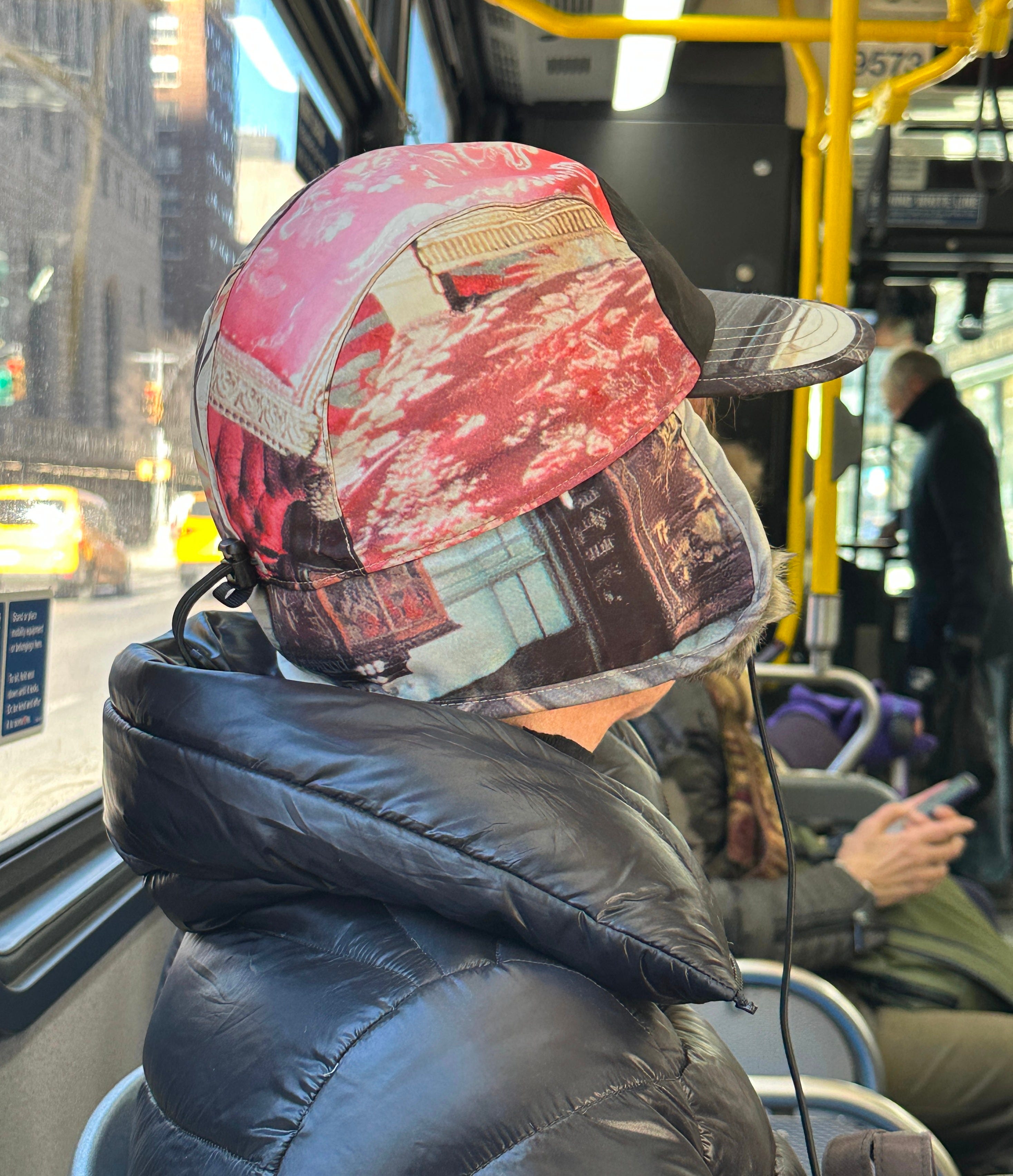 Older women in eccentric hats continue to dazzle me. This fur-lined printed trapper hat caught my eye, out of place on a midday Upper West Side bus jaunt full of strollers and grocery bags.