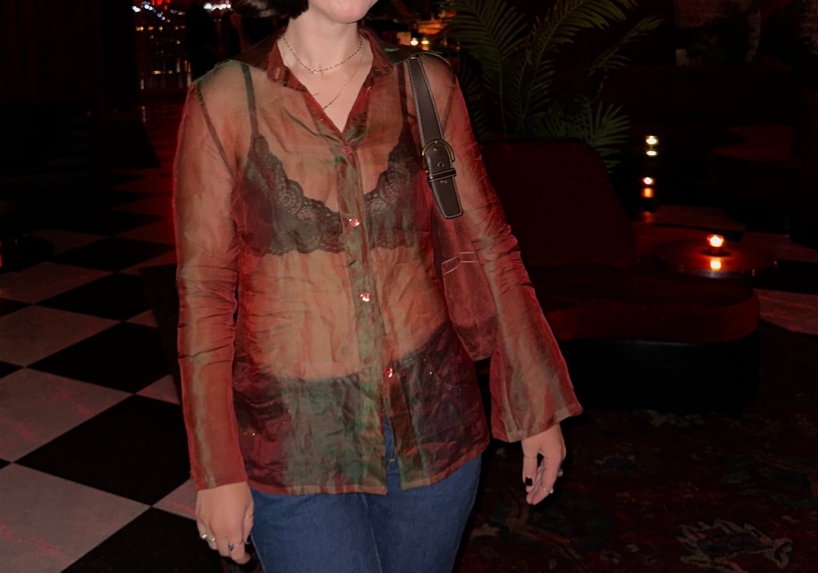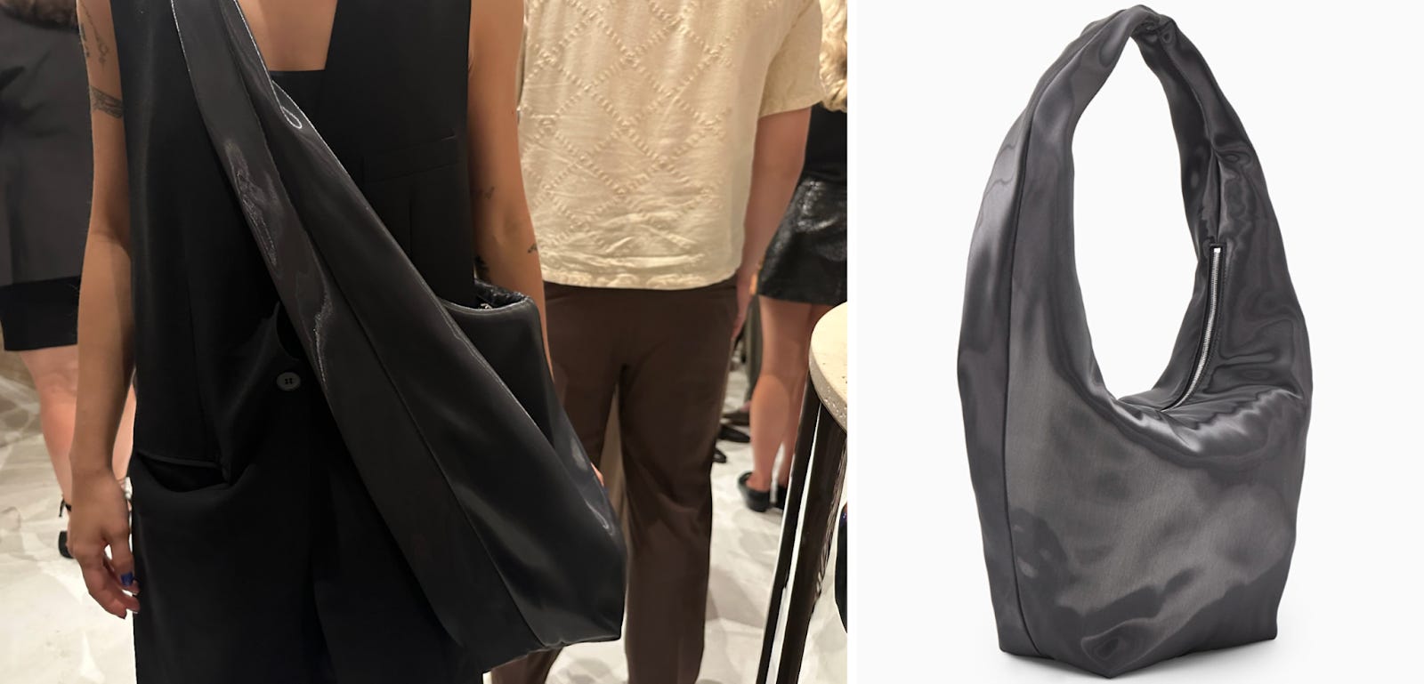 She too always seems to be attracted to iridescent pieces—like this COS bag and her not-pictured metallic blue fingernails—and it might have something to do with an ex-boyfriend.