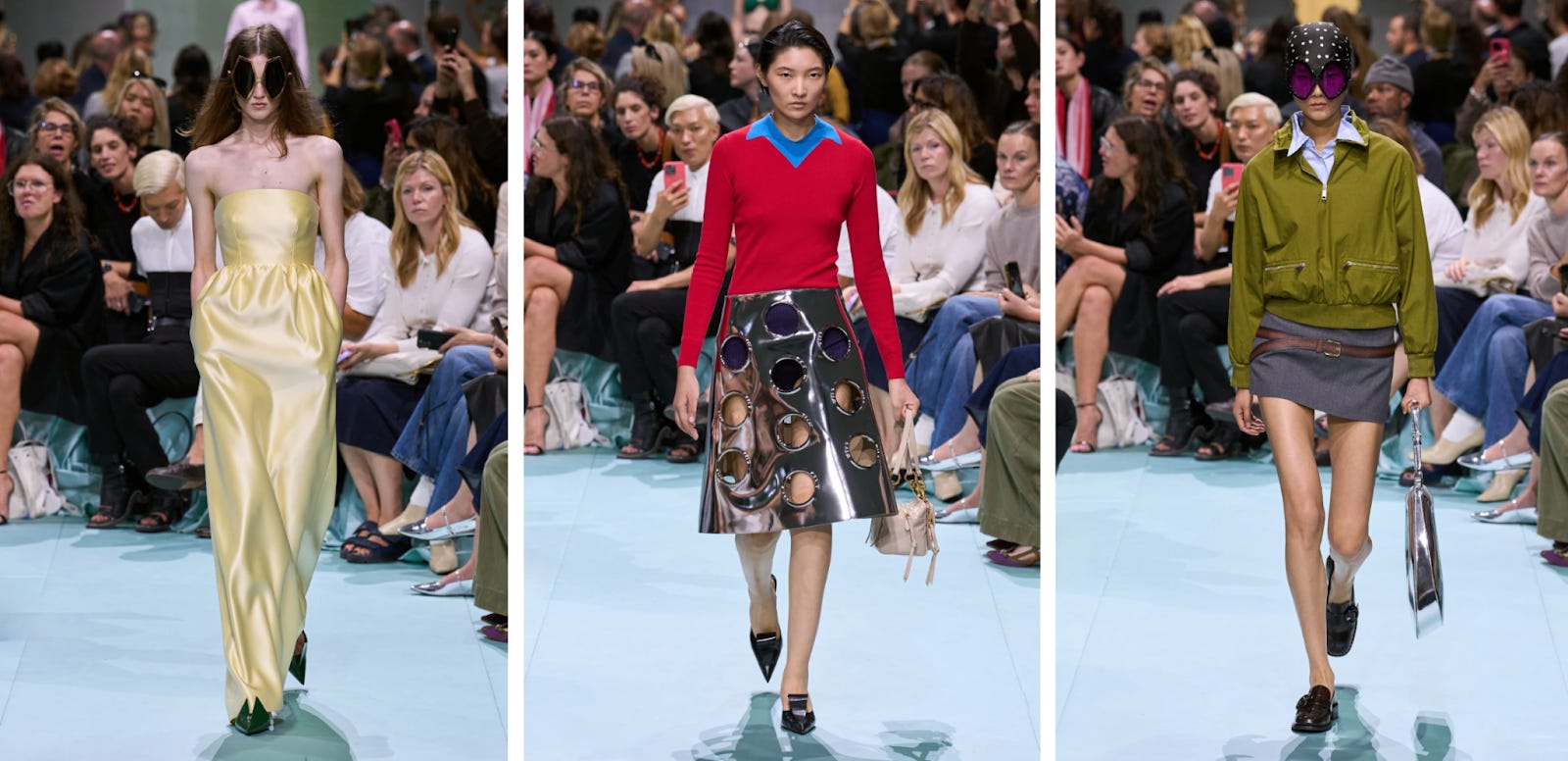 “Beetlejuice Beetlejuice Beetlejuice,” I chant with my eyes squeezed tight, clutching a pair of silver Mary Janes, praying when I open my eyes I’ll see not a half-dead Michael Keaton behind me in the mirror, but an apparition of Miuccia Prada wearing these Spring ‘25 sunglasses.