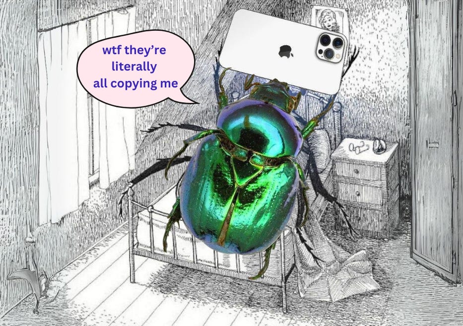 "cracking off a glittering exoskeleton" and "I want Y2K frosty futurism to have a baby with grimy indie sleaze, leave that baby in the woods, and watch the baby grow up to be queen of the stink bugs." are perfect masterpieces of literary joy and specificity...and I, although an avid Beetlejuice fan, am not even into beetlecore at all, just truly enjoyed the writing!