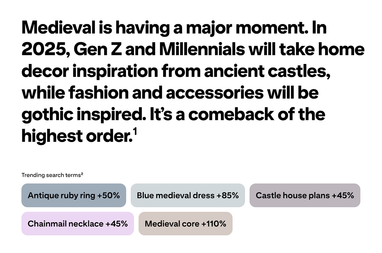 Aesthetically, I can’t lie, I love a medieval influence. But if everyone is wearing armor, whose swords are we shielding ourselves from? It’s an all-out class war in the chain mail aisle at Michael’s.