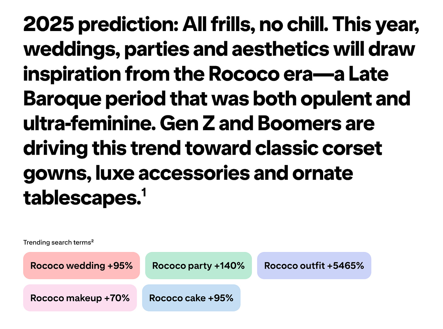 I wanted to share some historical context around four predictions — Rococo Revival, Castlecore, Sea Witchery, and Surrealist Soirees — to shed some light on why these aesthetics might be finding new popularity in 2025.