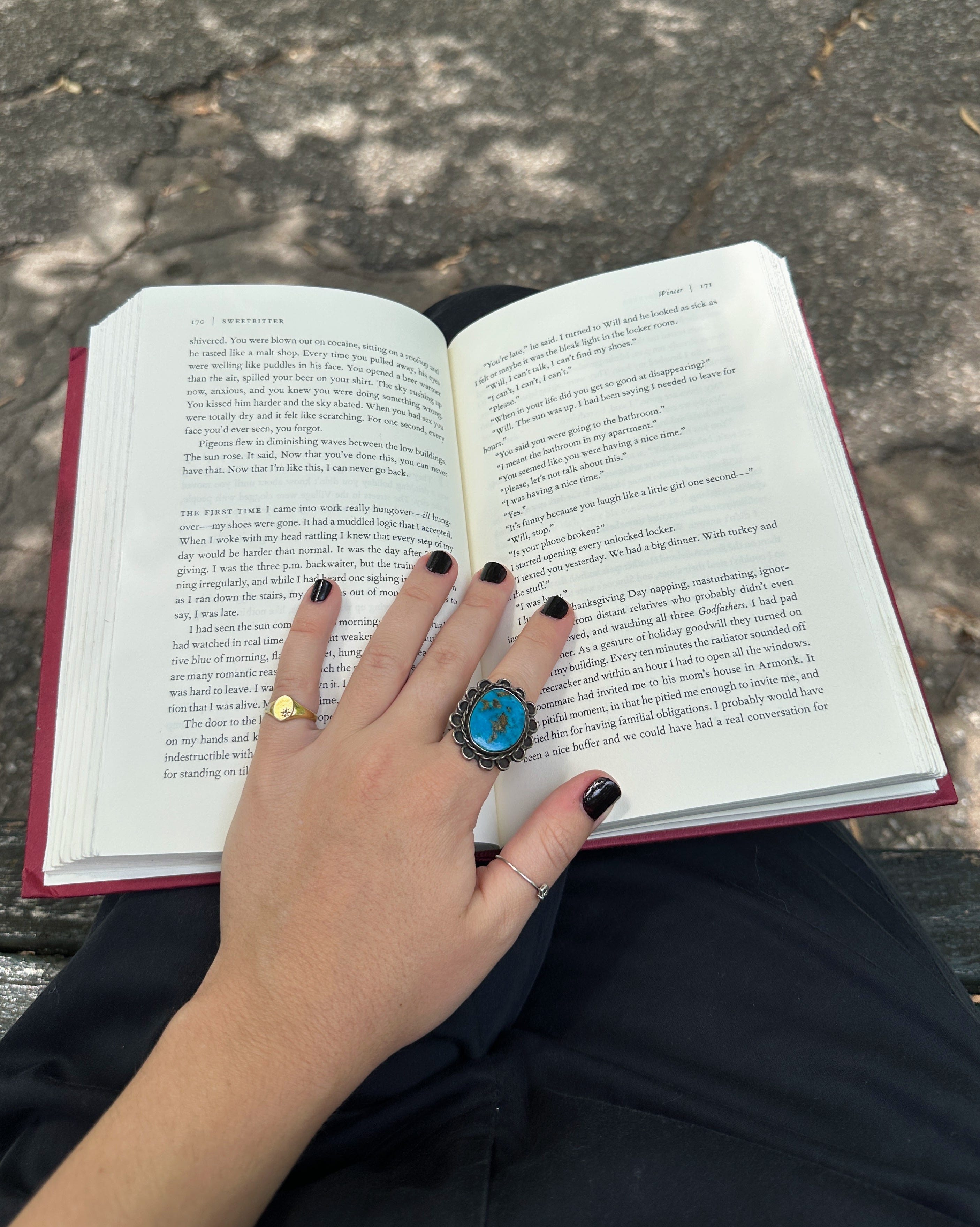 A (not pictured) giant statement turquoise ring, which I love best against a fully black outfit