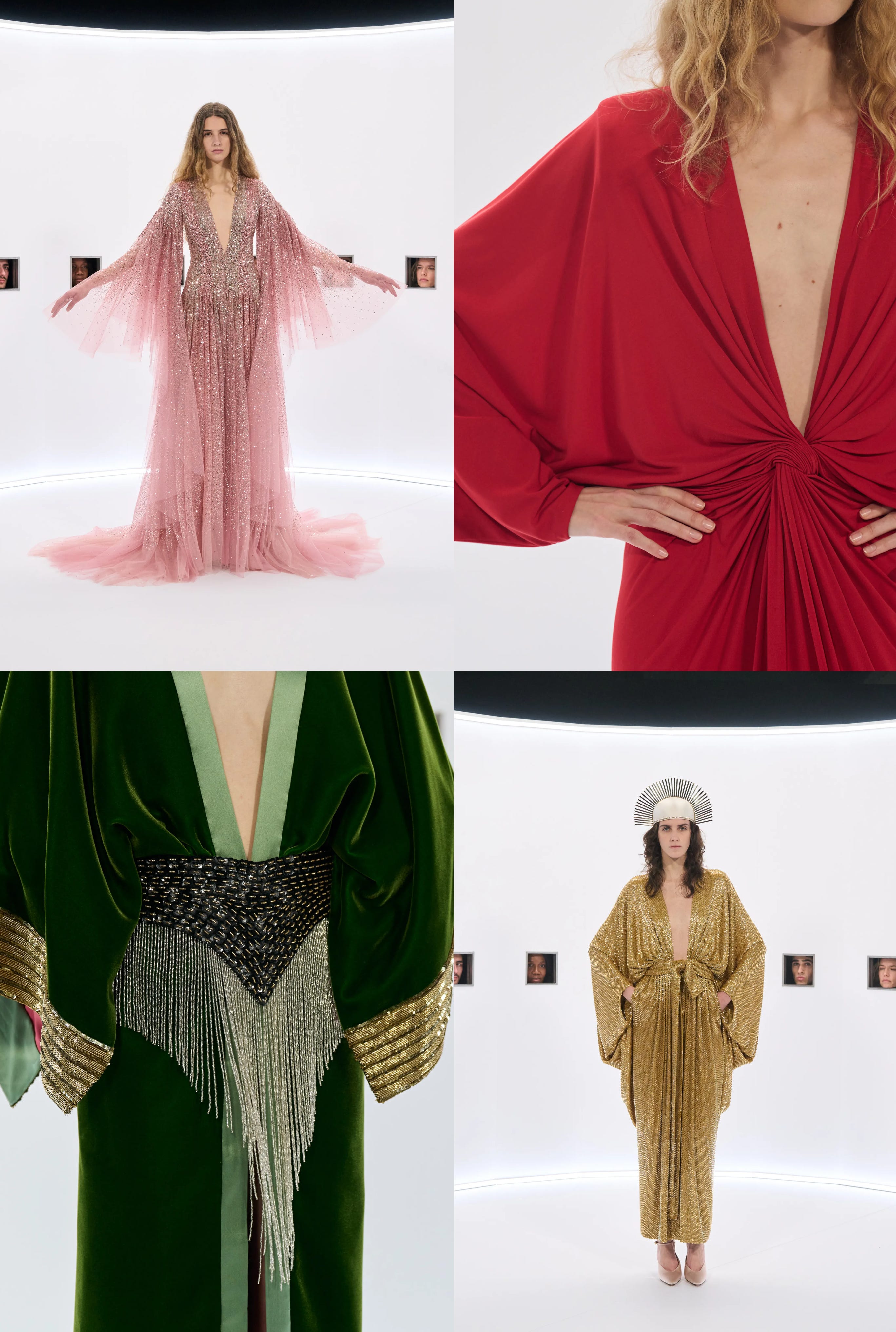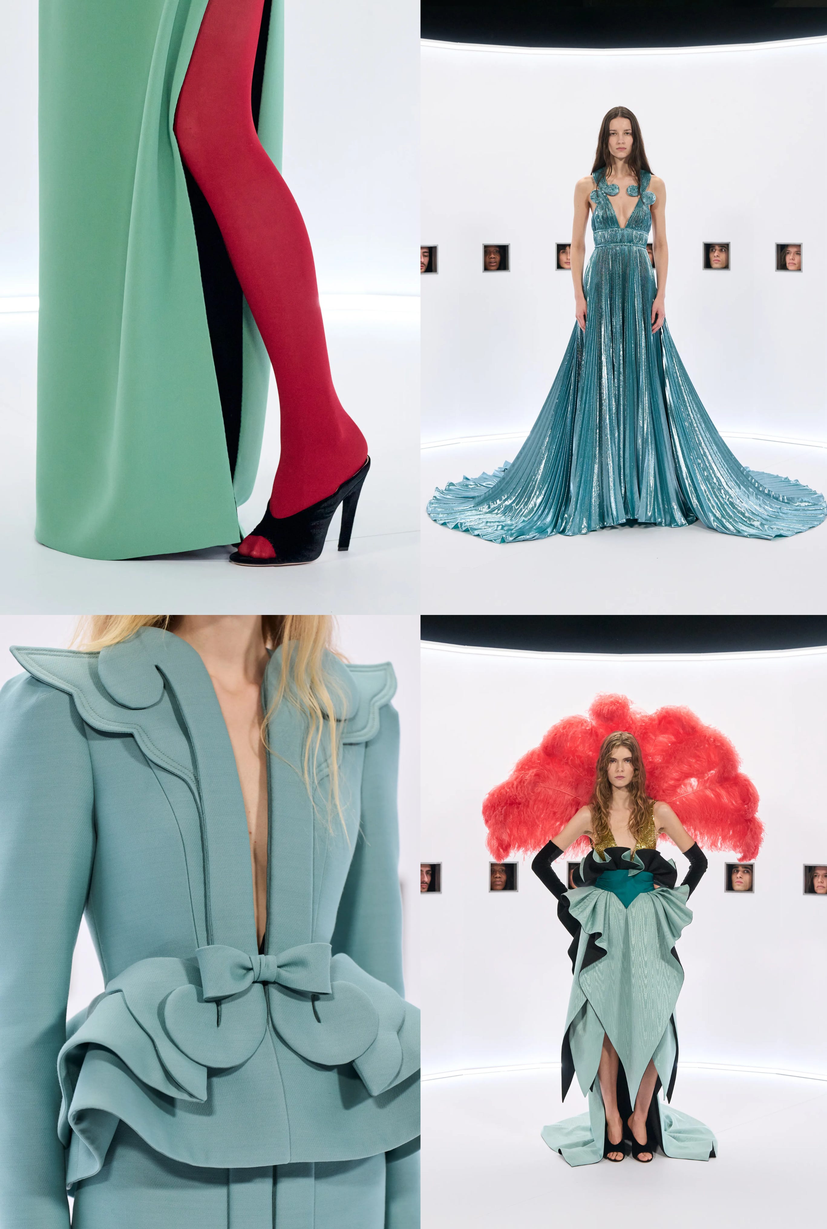 The Valentino couture show was a surreal inversion of traditional logistics with guests viewing the looks through peep holes as models cycled through stations instead of a classic runway. Because of this, every group of guests saw the show in a different order.