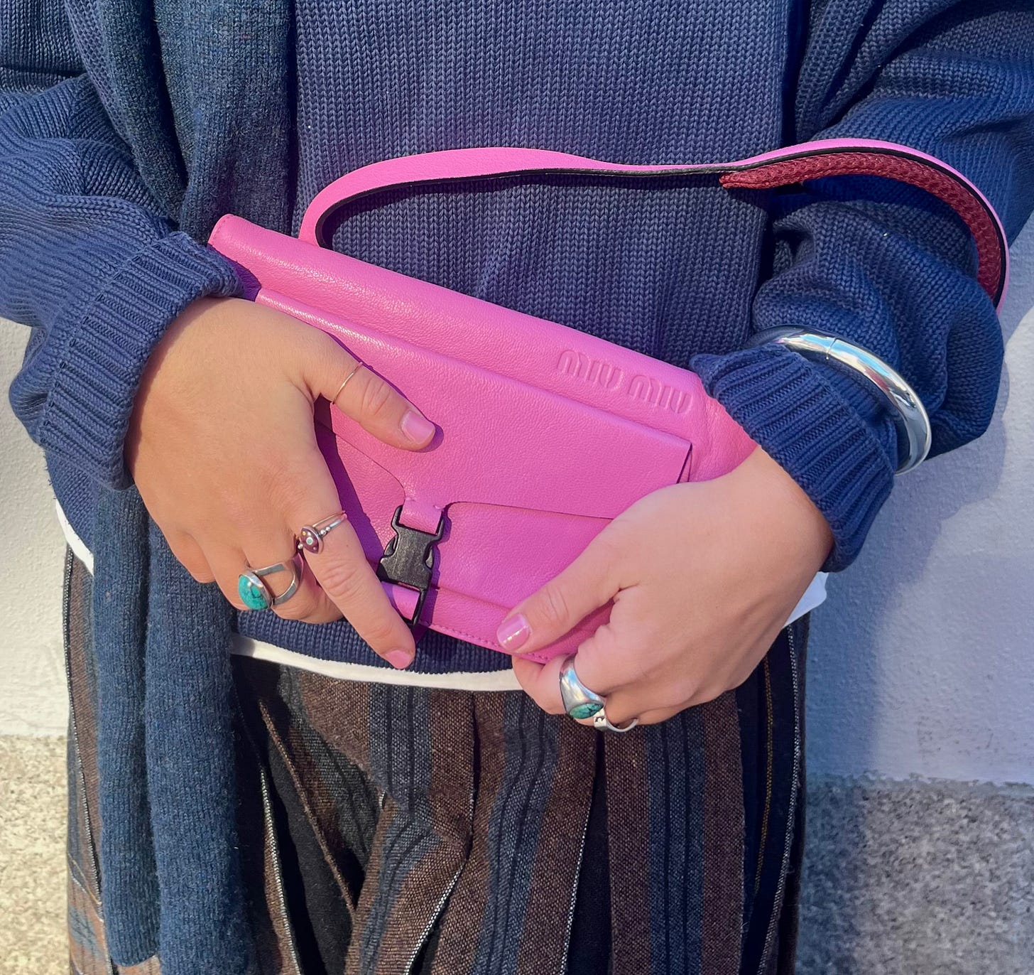 It’s hard to nail the right shade of pink: too subtle and you risk veering toward pale sickly flesh, too saturated without a balance of sophistication and you could enter Jojo Siwa tutu territory. This Miu Miu bubblegum is a dart piercing a bullseye on the color wheel. It’s better actually — it’s the dart piercing the dart in the bullseye, splitting its tail in half eliciting gasps and cheers from the bar seats. I’m halfway through a tepid pint of Guiness rocking in my stool shouting “Oh my god! That’s the perfect pink!”