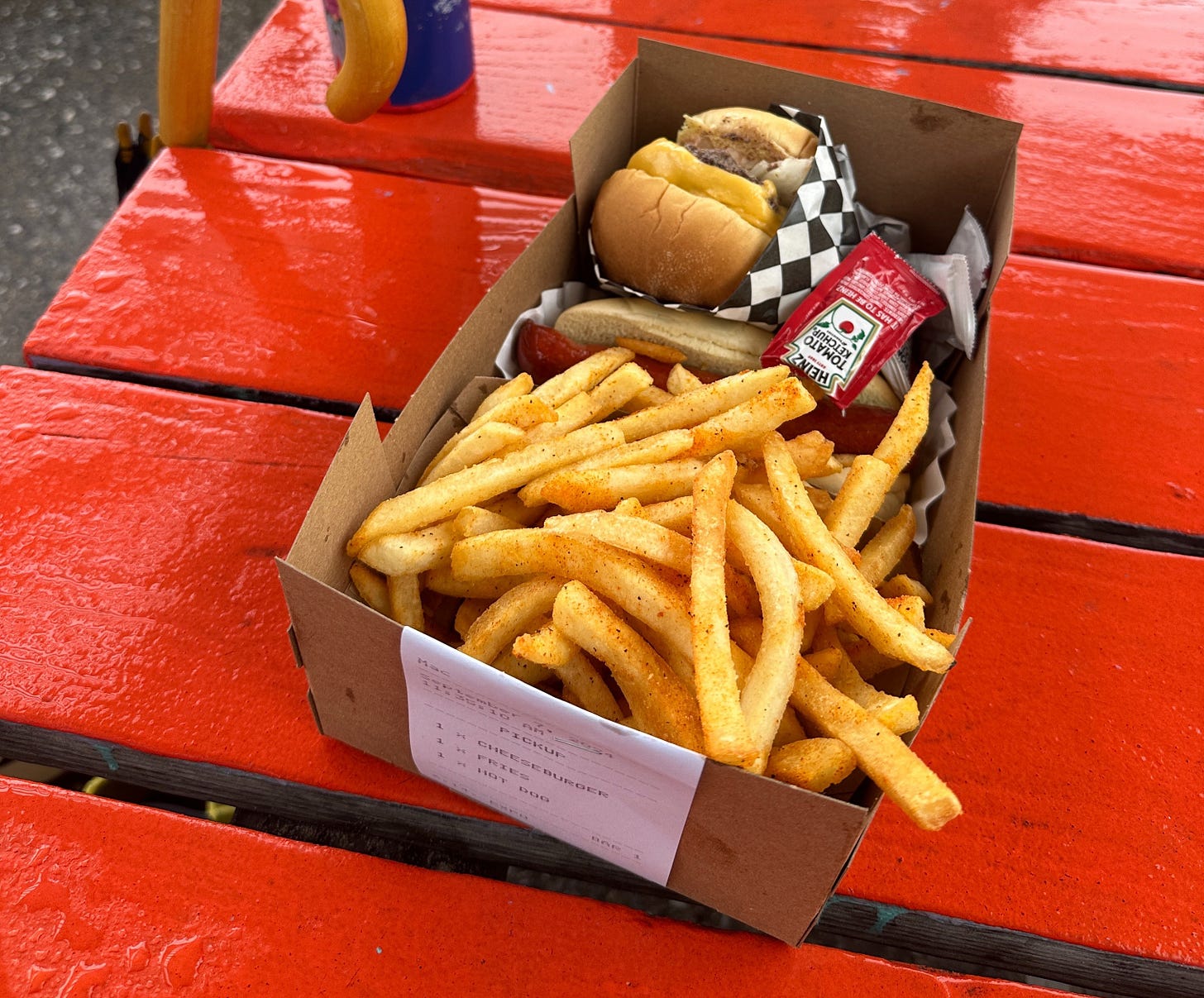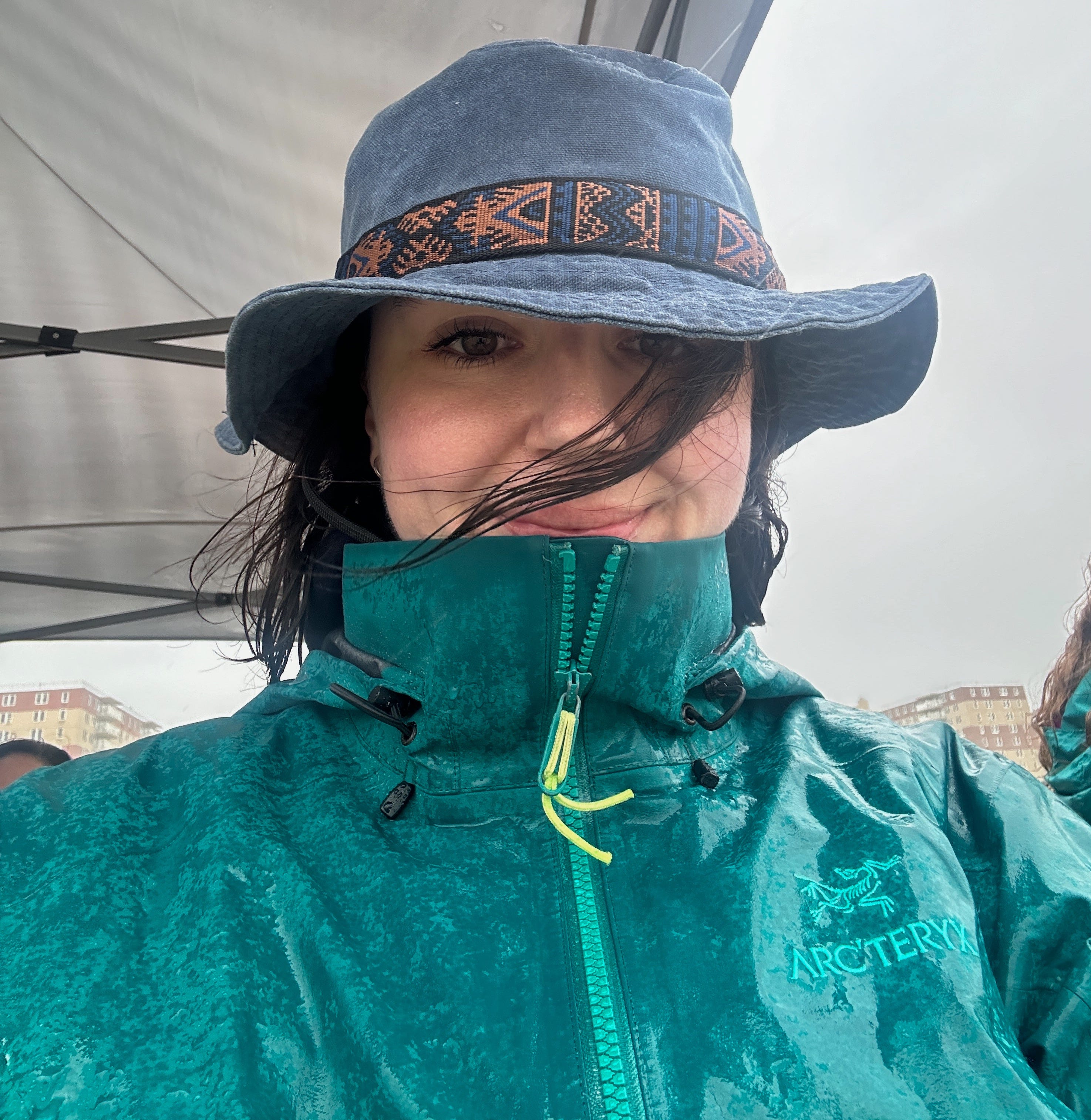 I ate a hot dog in flip-flops and sopping wet Vietnam War era army pants (why did the vintage store specify to me they were Vietnam War era? I don’t know but now I can’t unknow it) and shivered underneath my Arcteryx rain jacket until the sun showed up.
