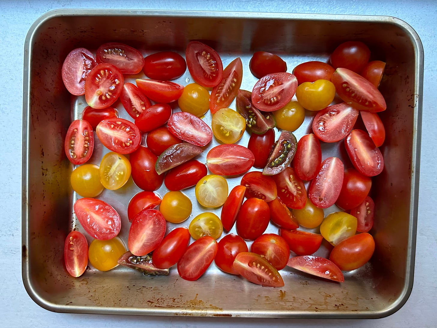 After a visit to the farmer’s market, I ran home to start a focaccia for dinner. I wore sweats the rest of the night dimpling dough, blending pesto, and chopping cherry tomatoes.