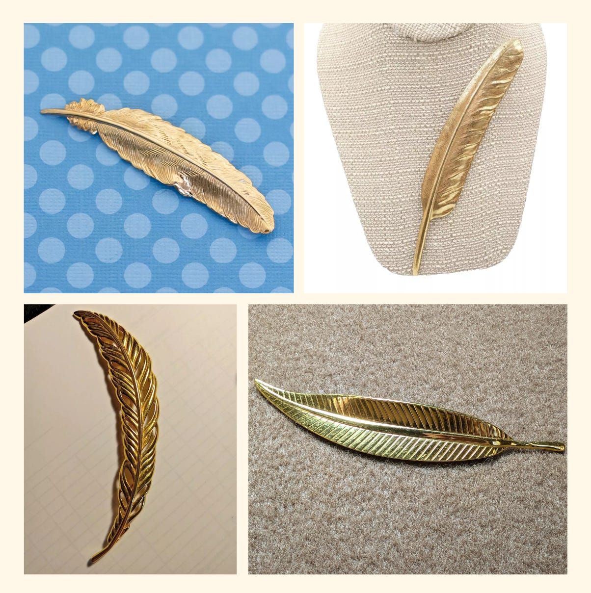 I’m personally thankful to know Julia still has that Armani treasure hanging in her closet, and in case you share my desire to pigeon-ify a suit or coat at home, here are some lovely vintage feather brooches I found just for you: