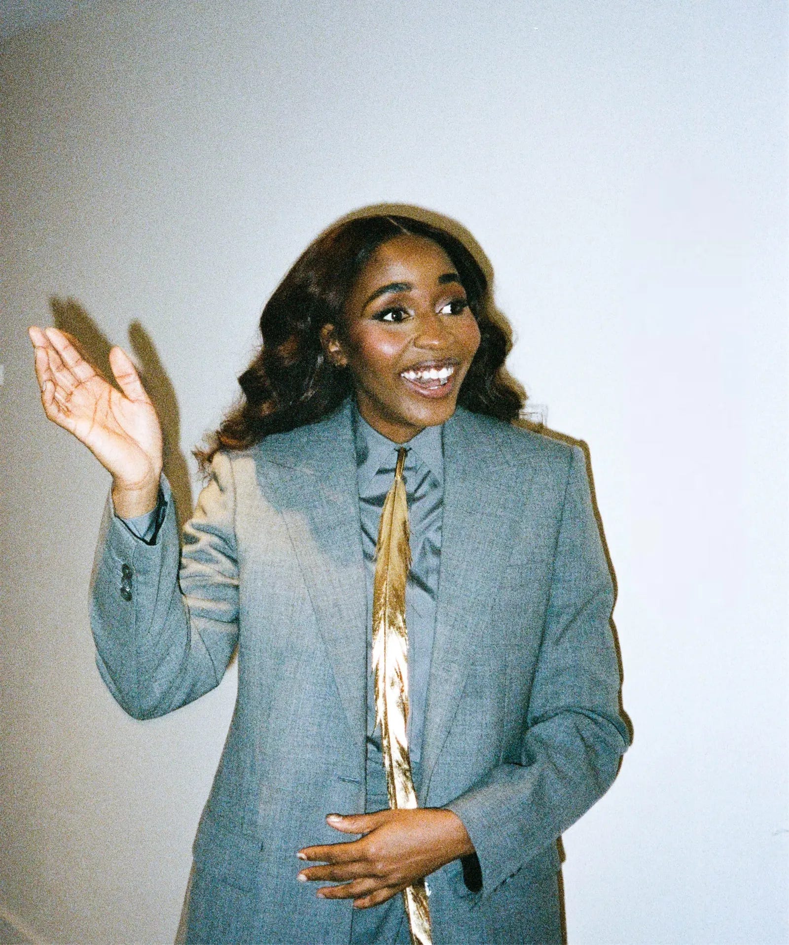 And it’s the thrill of striking a good balance that keeps Ayo coming back to these suited moments: “Playing with masculine silhouettes and subverting the expectations of womenswear is so much fun,” she said in an interview with Elle UK.