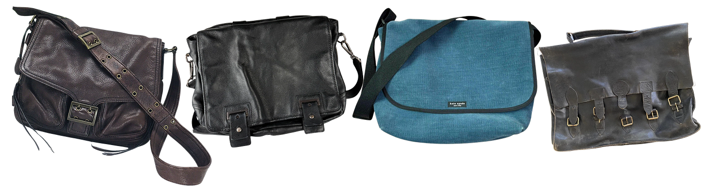I don’t hate this version at all. I actually love this shiny industrial button-strapped design, it just still didn’t meet my criteria. Even without the logo, it was too casual, didn’t fit a laptop, and wasn’t leather. I was annoyed with myself for trying so hard to make it work when it, at this point, it hadn’t been working for years. We were long past couples therapy by now.