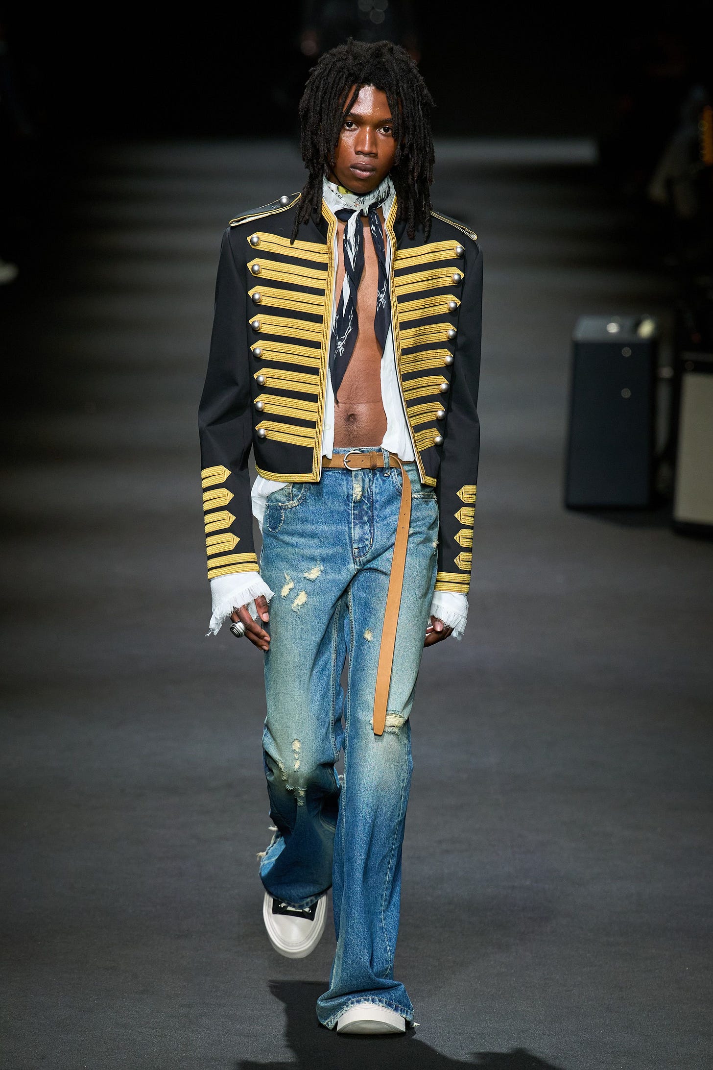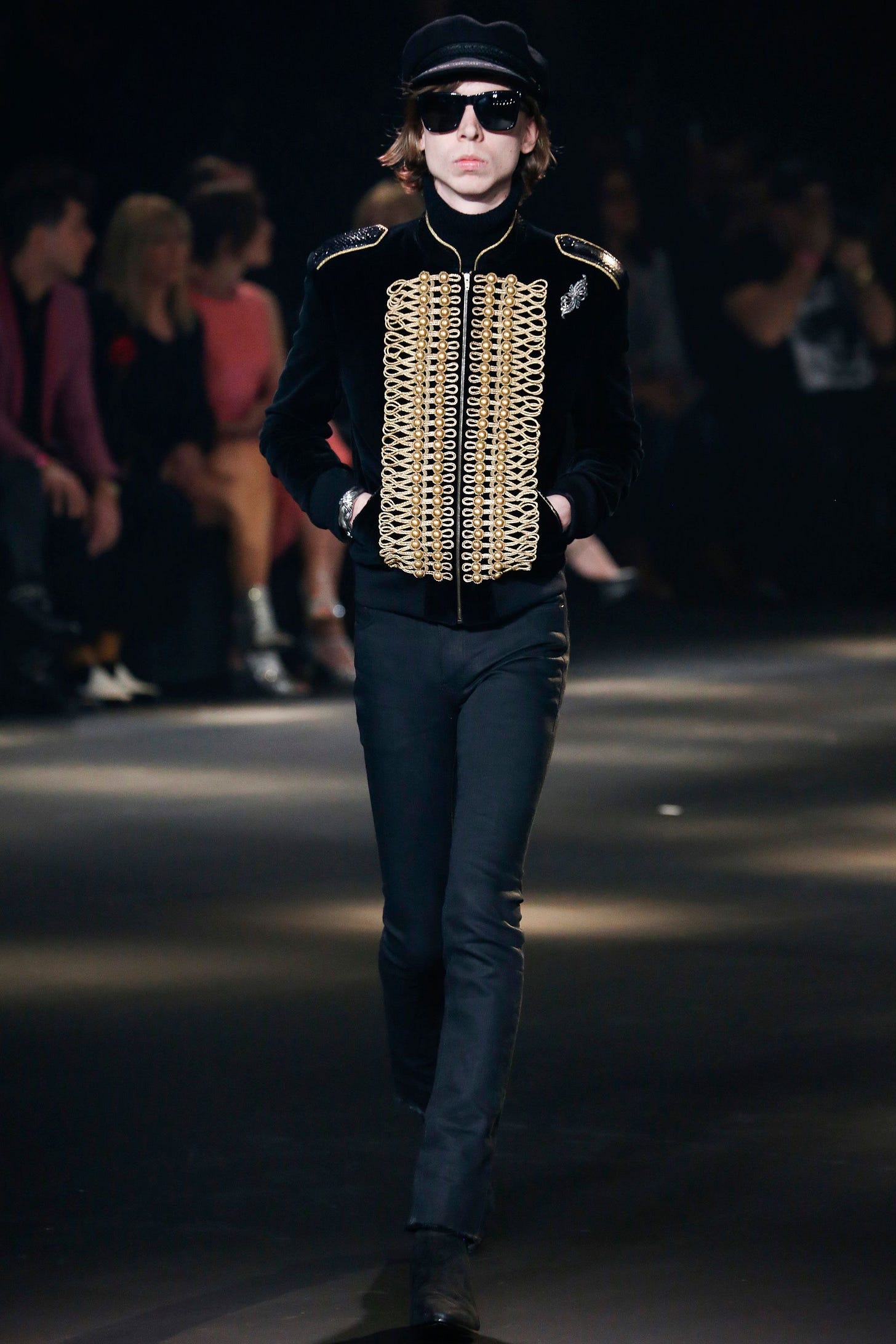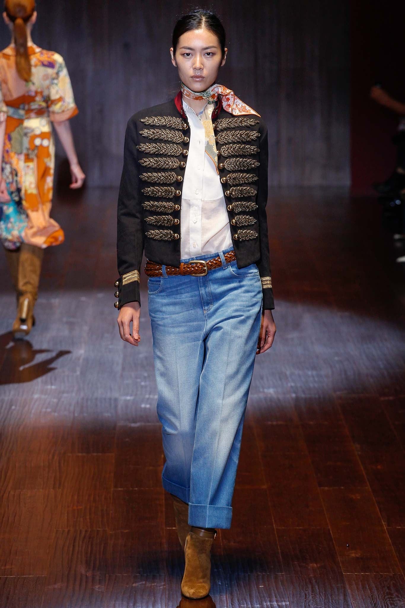 Various interpretations of the jacket popped up in all manners elsewhere on the catwalk through to the twenty-teens including: Marc Jacobs’ more subdued versions; Gucci’s casual boho-inspired looks; and as part of Olivier Rousteing’s high-luxe “Balmain army.”