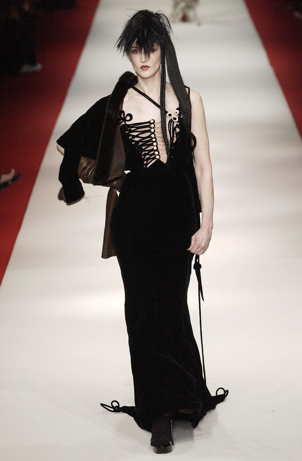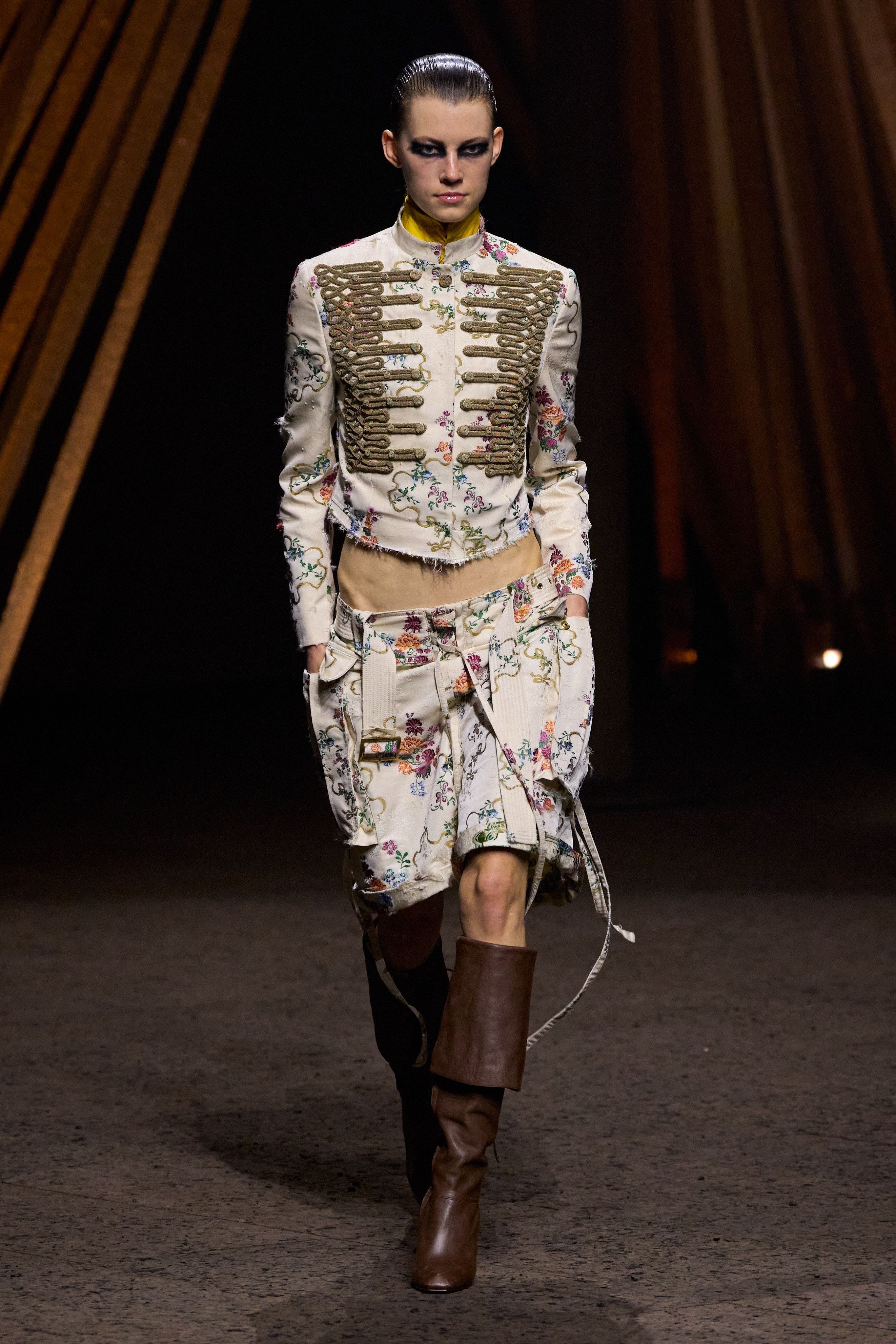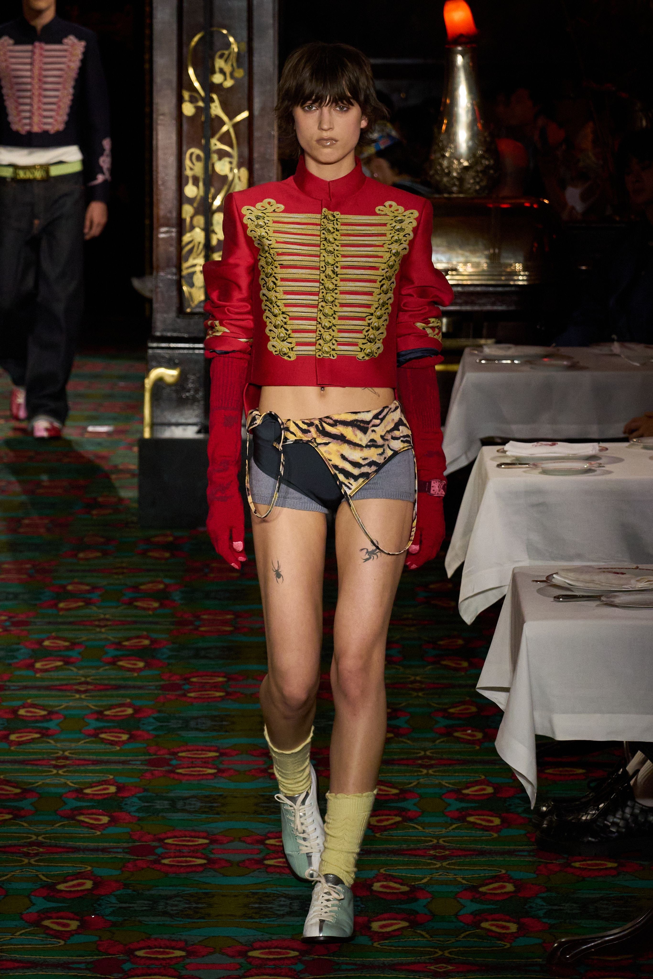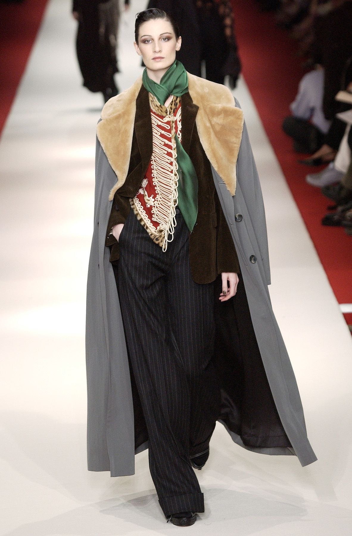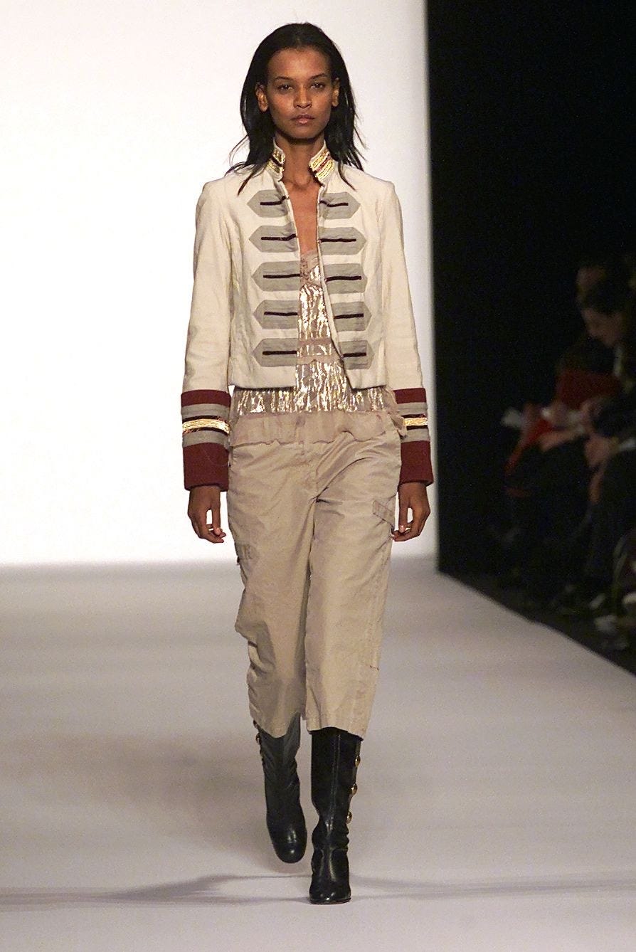 Jean Paul Gautier, ever the one for a little flamboyance and flair, highlighted the hussar jacket in his sultry fall 2002 couture collection, weaving together traditional military motifs with modern suiting and slinky materials.