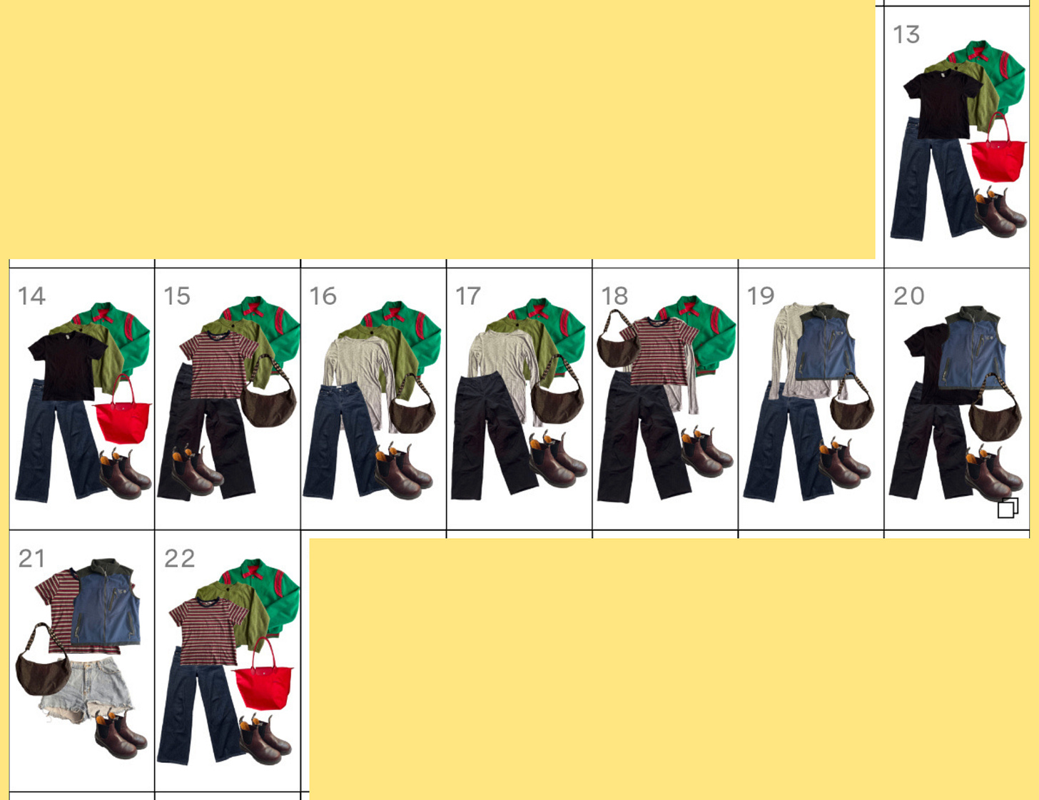 I rewore a vintage ‘60s varsity jacket, a striped Rolla’s tee, and my auburn Blundstones like it was my job. We discussed my vacation outfit repeating ad nauseam in the last letter so I’ll spare you a recount. Read more about my holiday uniform philosophy here: