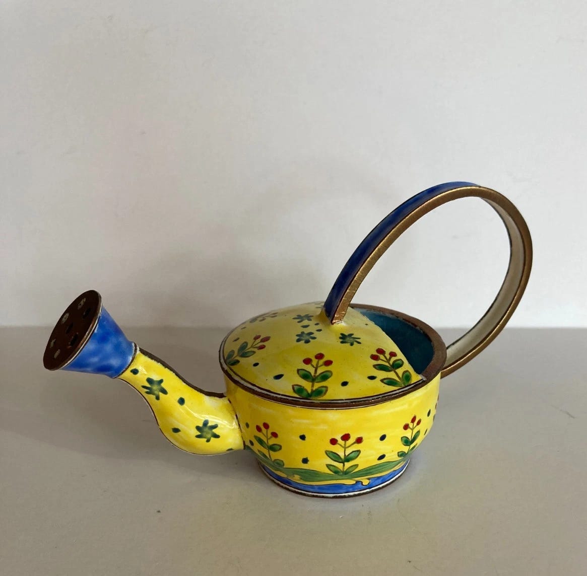 Vintage Kelvin Chen Miniature Enamel Watering Can, $40