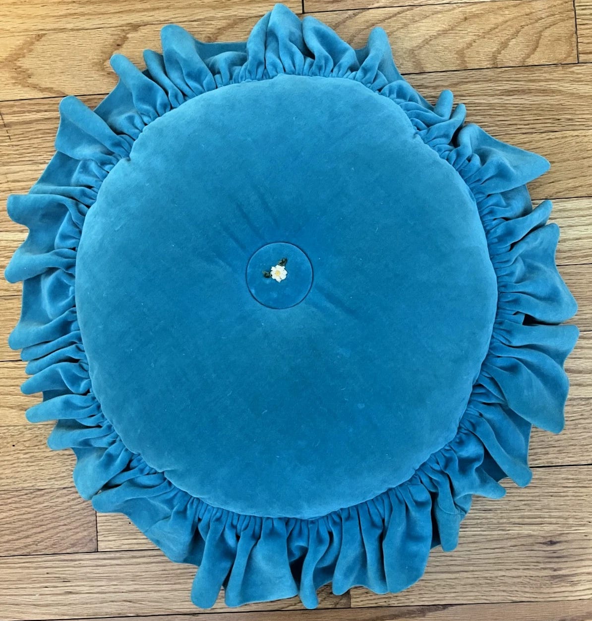 Vintage Round Bright Turquoise Ruffle Velvet Pillow, $33