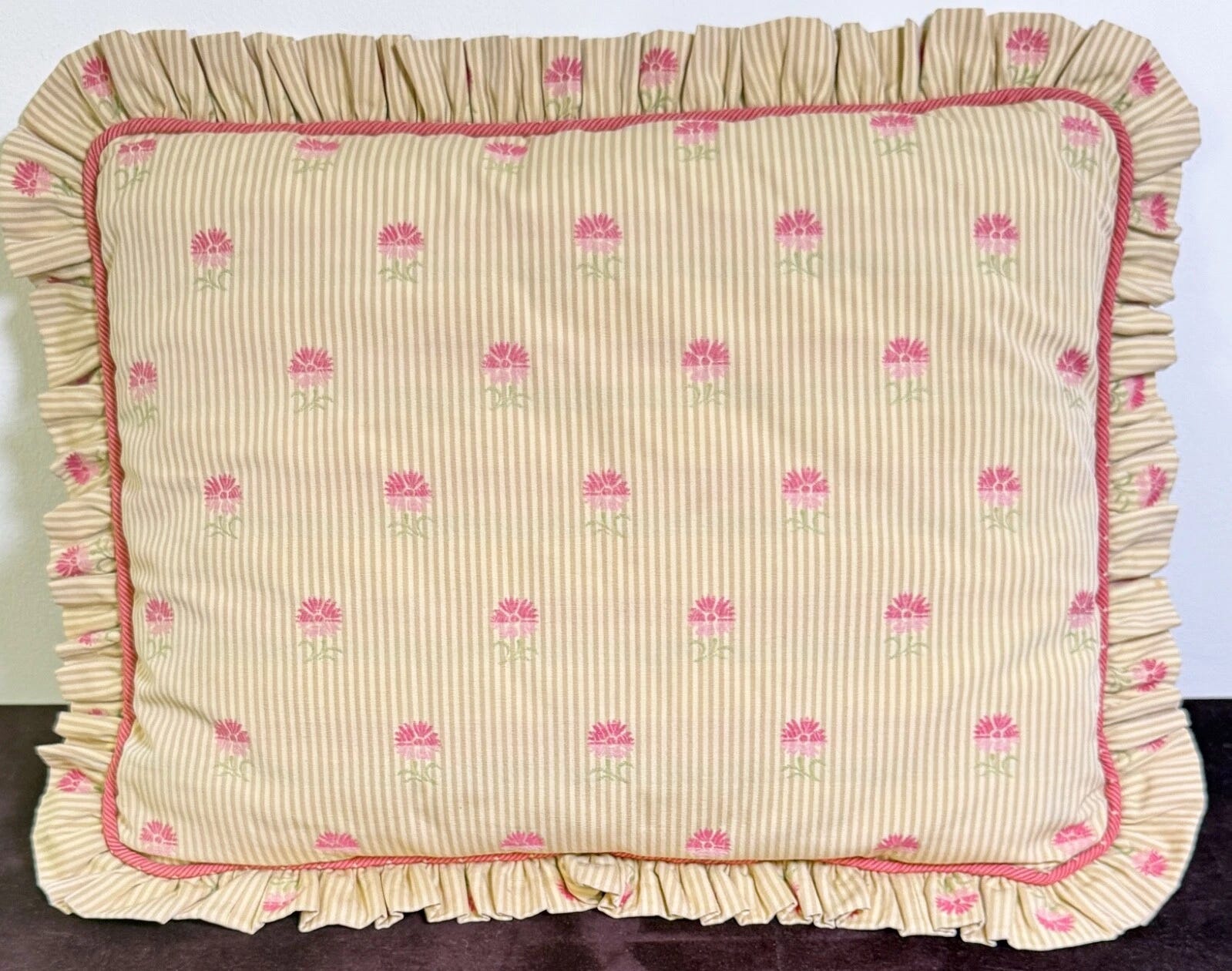 Vintage Throw Pillow with Floral Pattern Ruffled Trim, $95