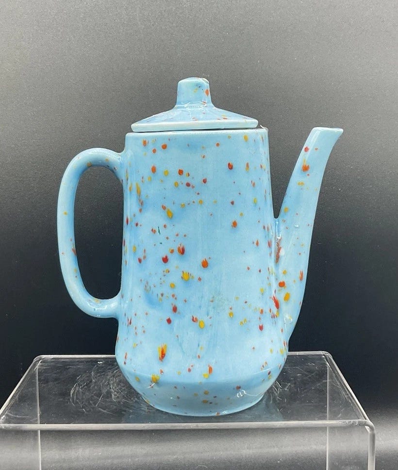 Vintage handmade speckled teapot, $25