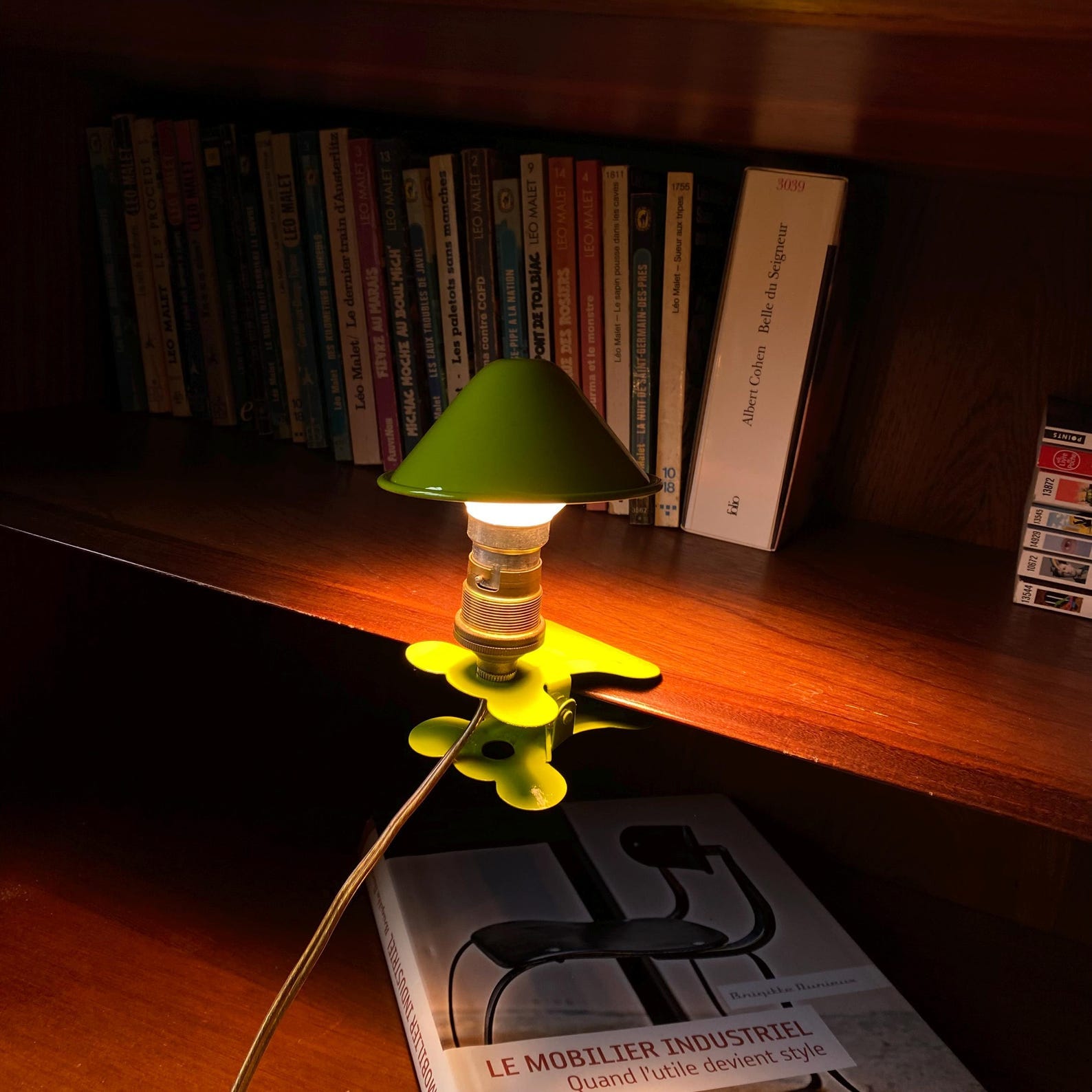 Small green metal mushroom clip-on lamp, $42