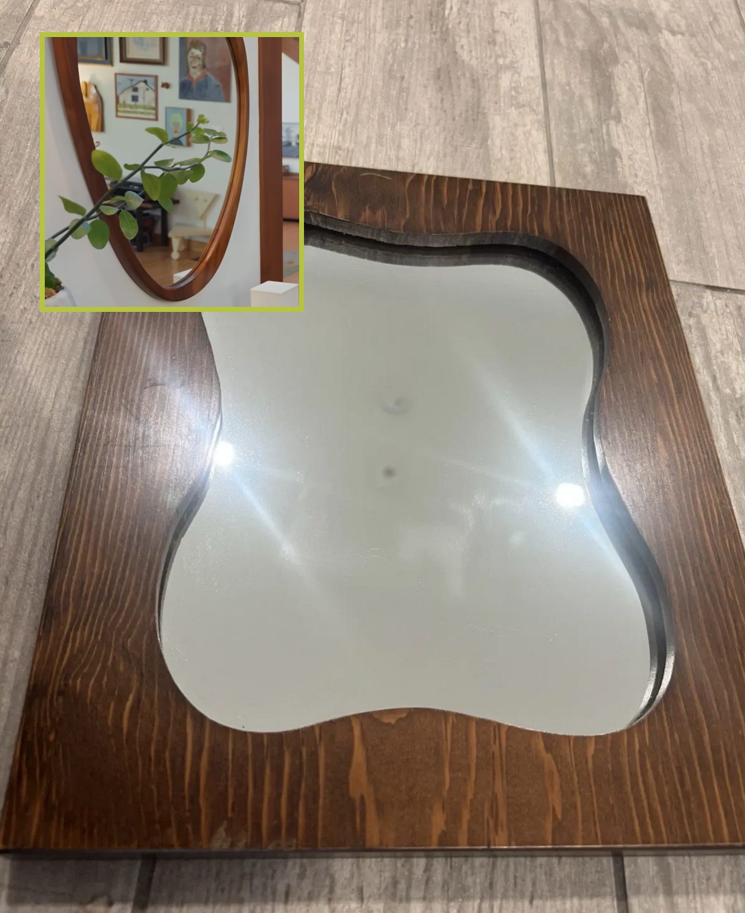 Vintage MCM Oblique Wooden Mirror, $66