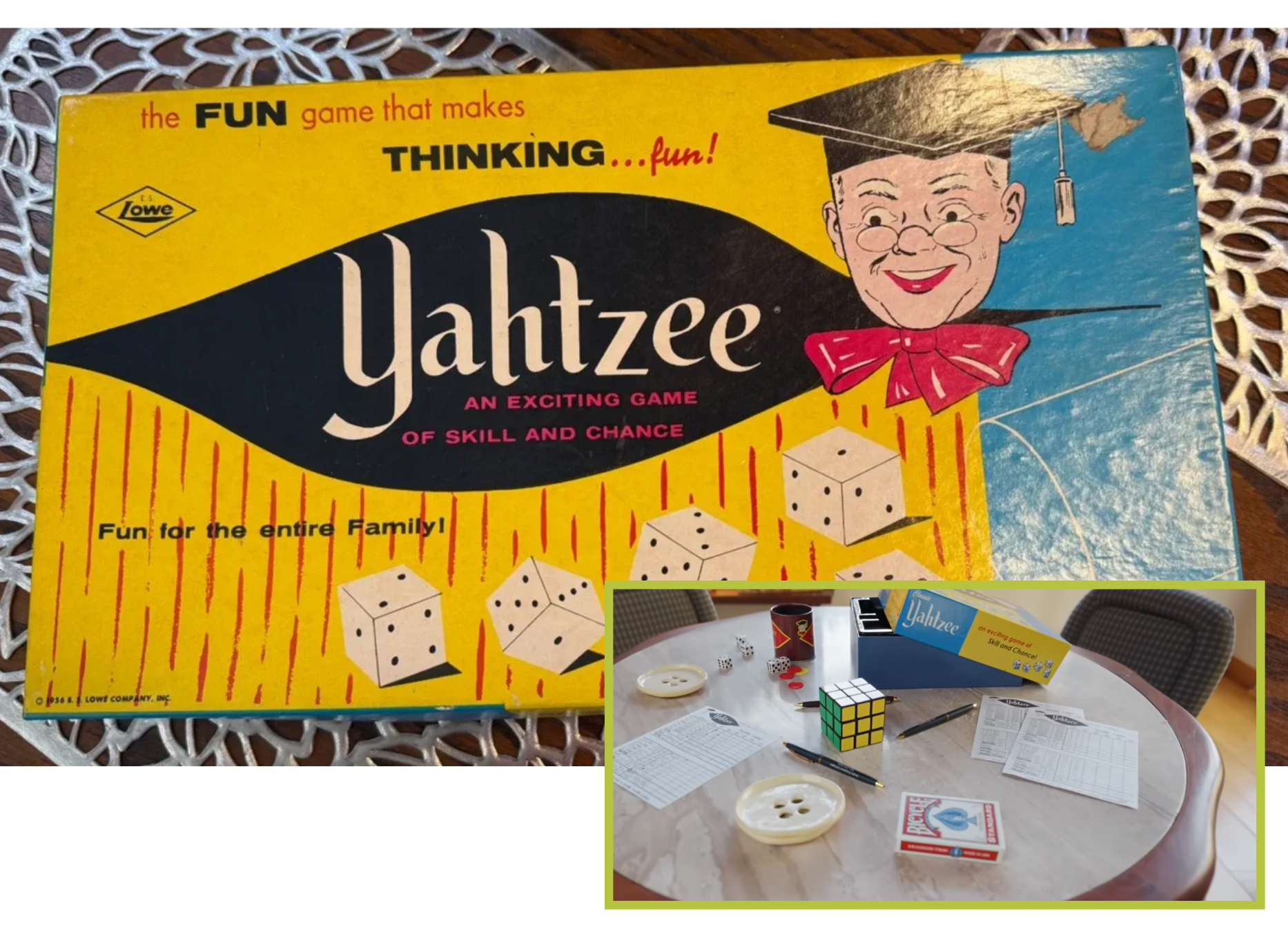 Yahtzee Dice Game Vintage 1956 E.S. Lowe Company Sealed pieces Unplayed, $20