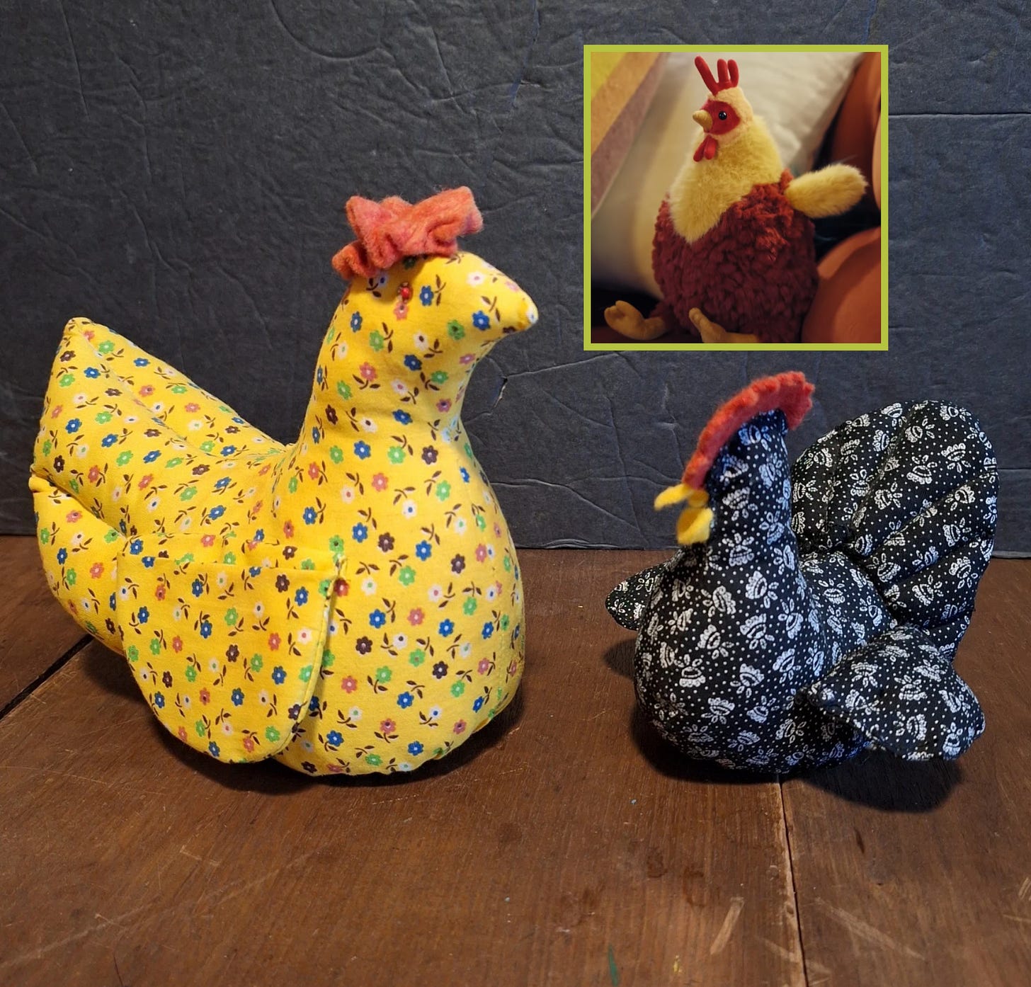 Vintage Set Of 2 Home made Fabric Chicken/Hens Plush, $19