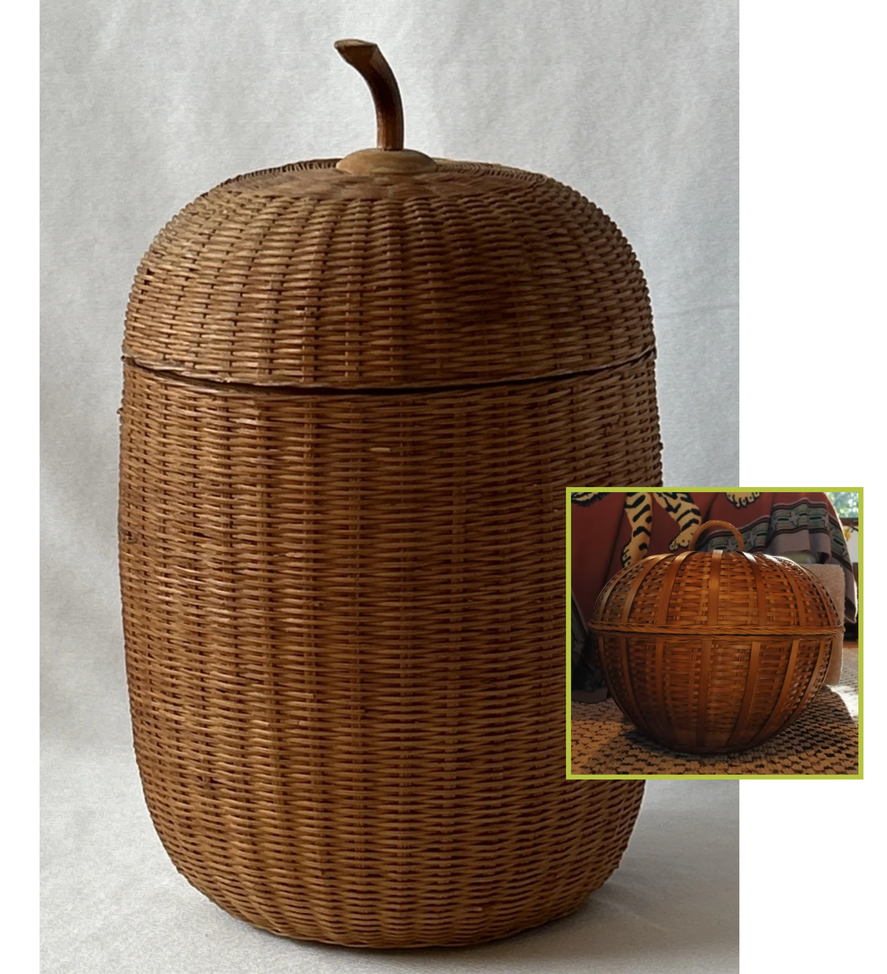VTG Wicker Woven Basket with Lid, Delicate, Tightly woven 8.5 in Tall, bid at $13