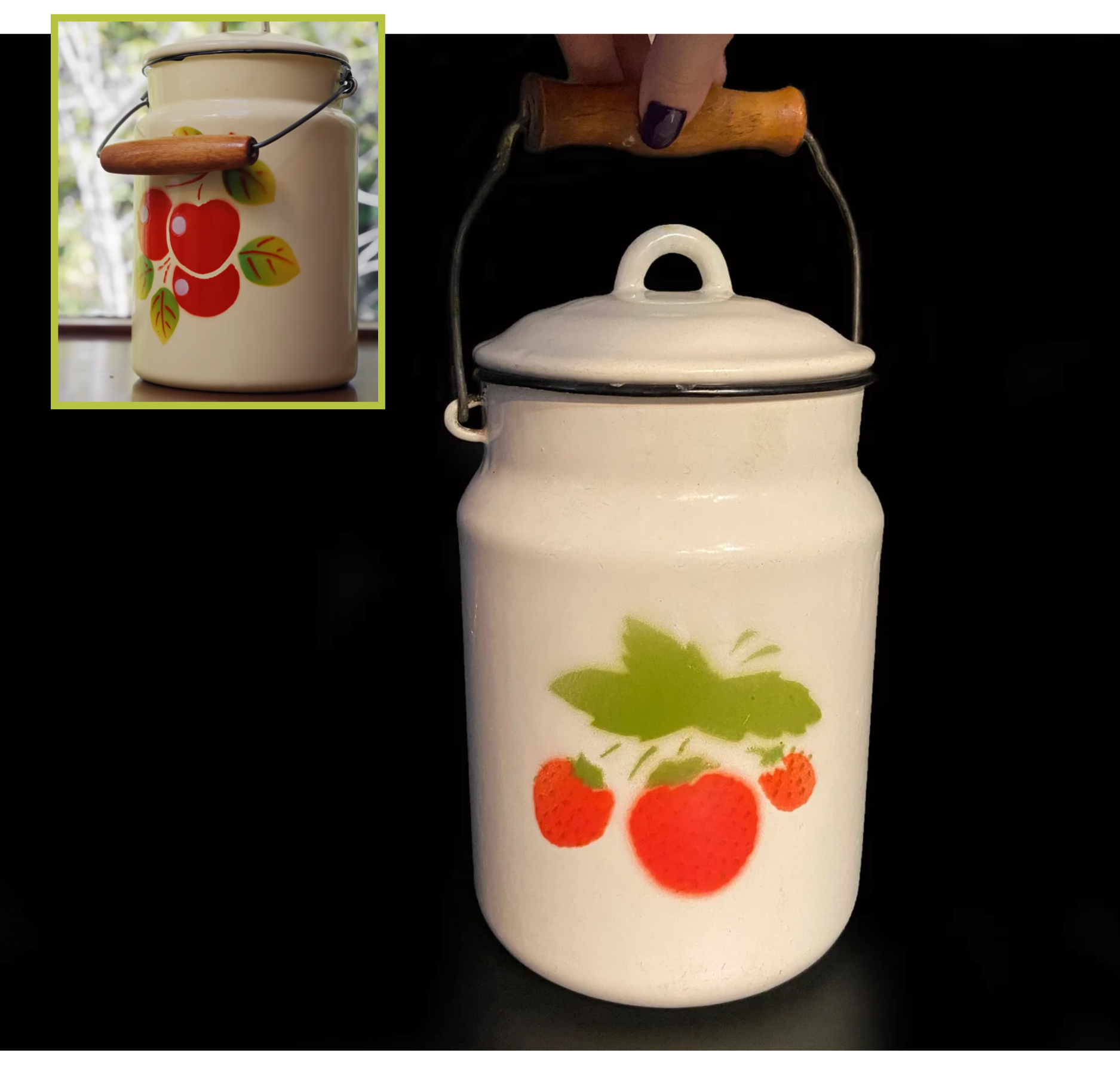 Vintage old enamel milk can, $32