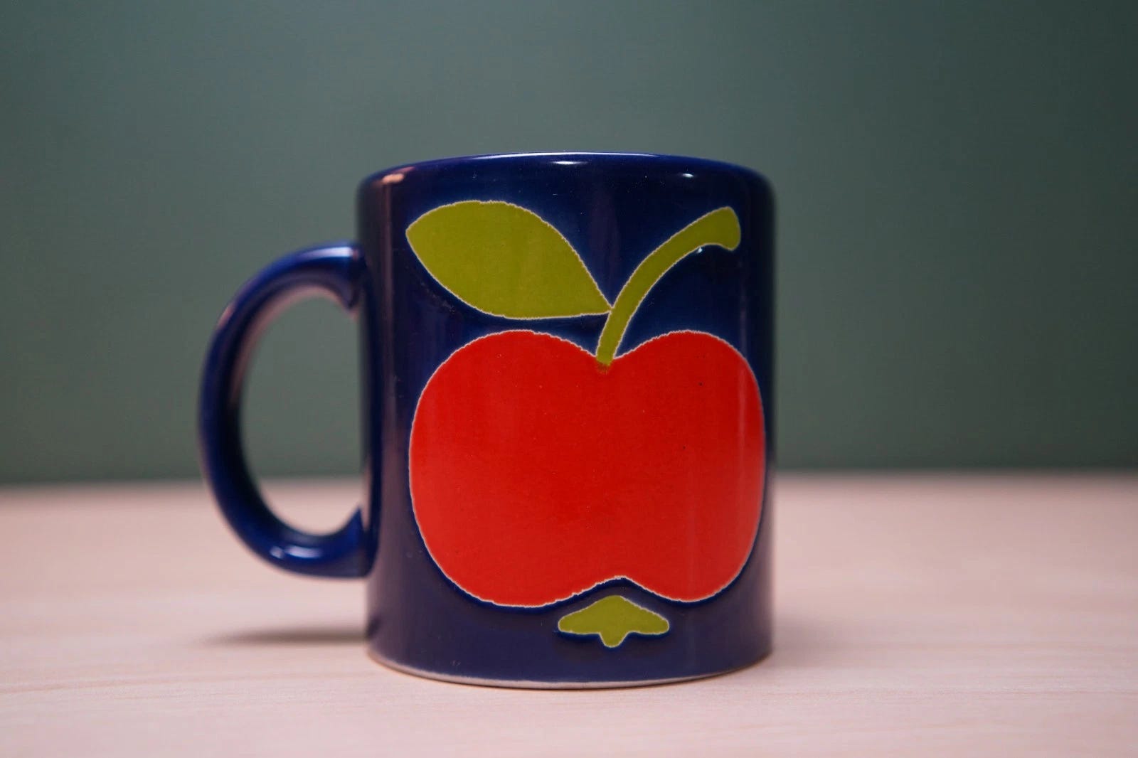 Waechtersbach Red Apple Coffee Mug Vintage Retro Dark Blue West Germany, $10 (Yeehawt color palette helloooooo)