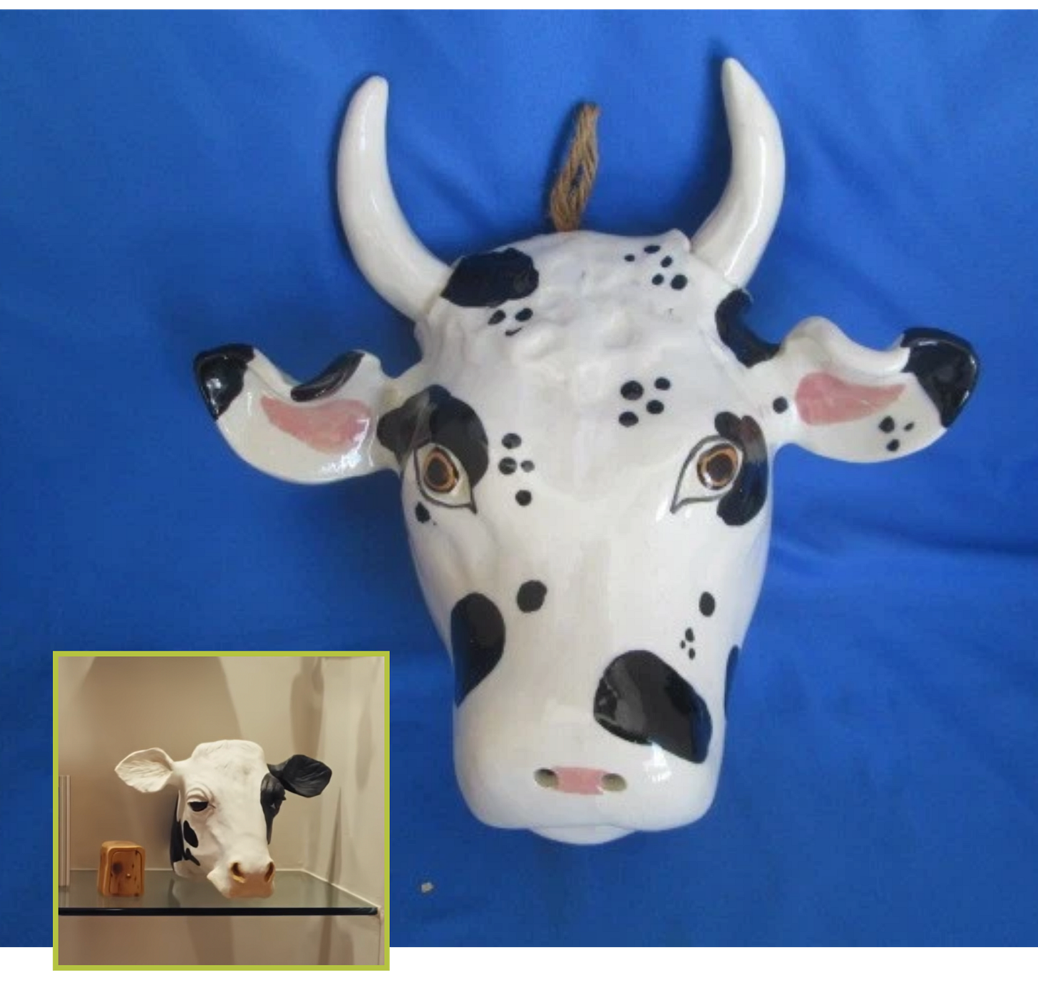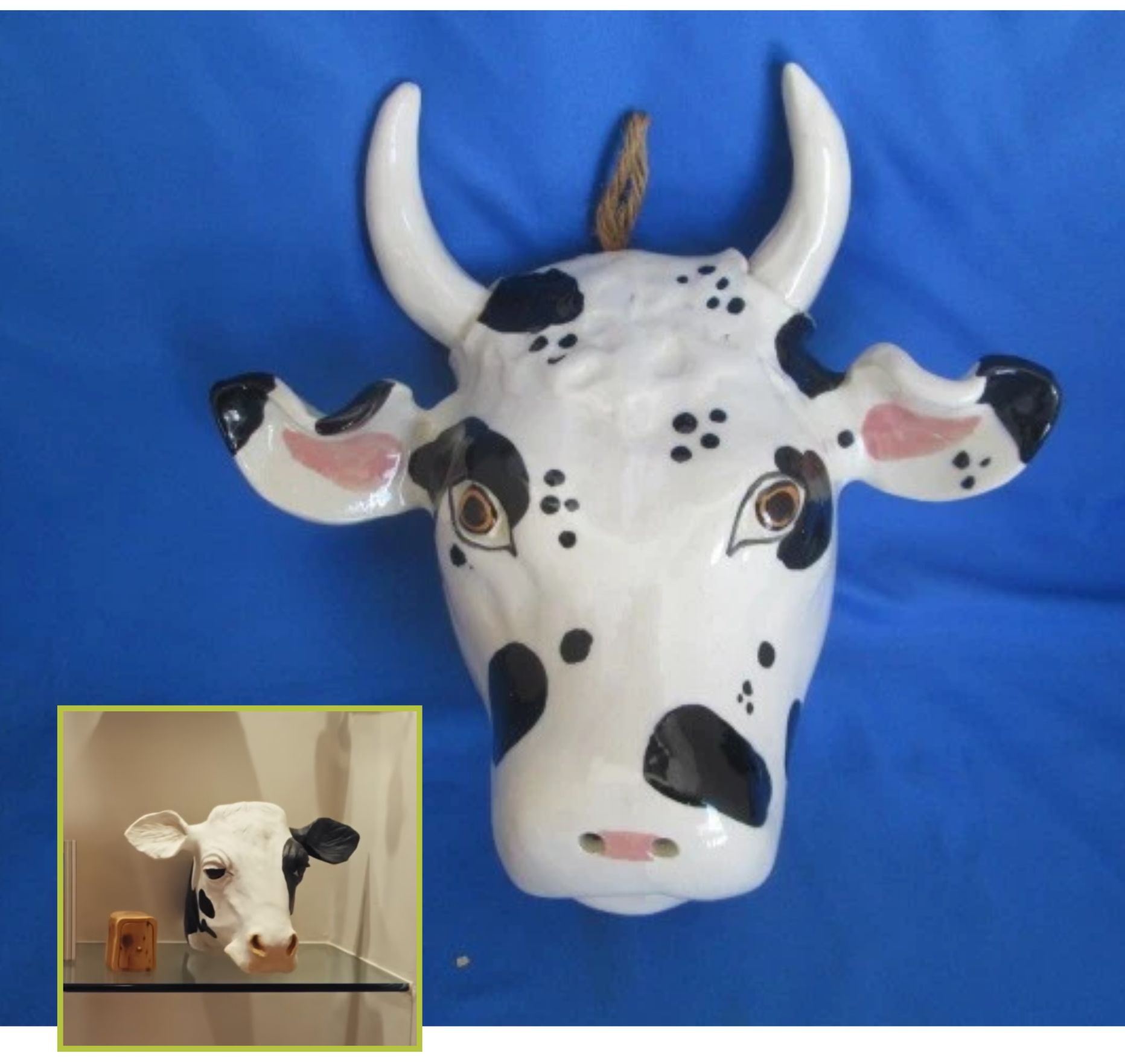 VTG Ceramic Cow Head Decoration Black And White 8 1/2” Signed, $30