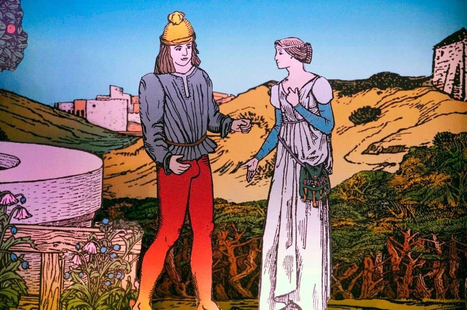 Chaucer comes up repeatedly in research regarding medieval sexuality and dress — he was nothing if not interested in the saucier side of life. I reached out to a medievalist friend of mine (highly recommend having one in your Rolodex) and asked about Chaucer’s The Canterbury Tales, in which Chaucer details the sensual outfit of a captivating young woman named Alison.