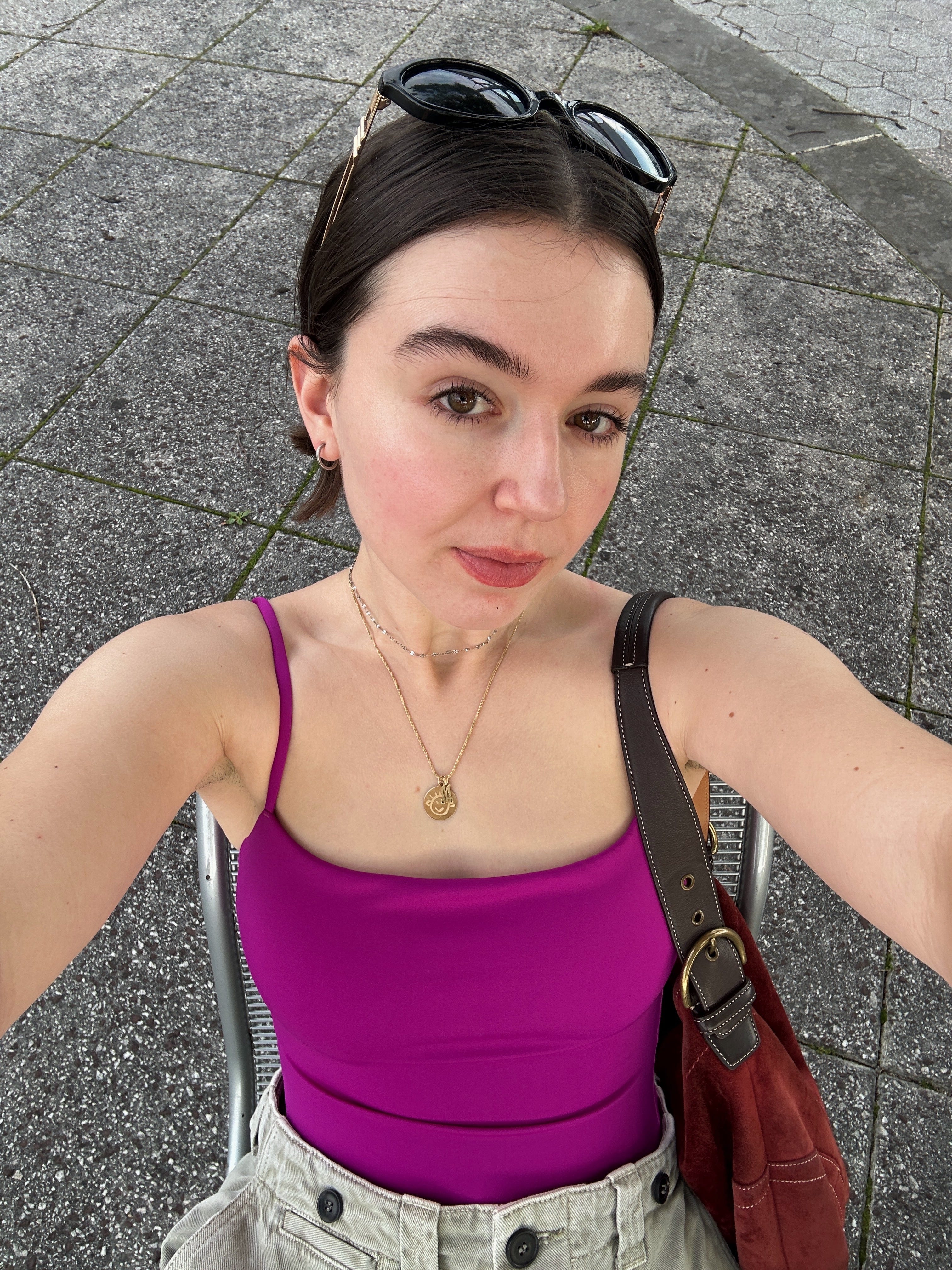 In the spirit of swim as daily attire, I reached for this Left on Friday one piece suit a lot in June. Pros of subbing a one piece for a top: supremely comfy, secure compression so you don’t have to wear a bra, and it stays in place all day unlike a flimsier bodysuit.