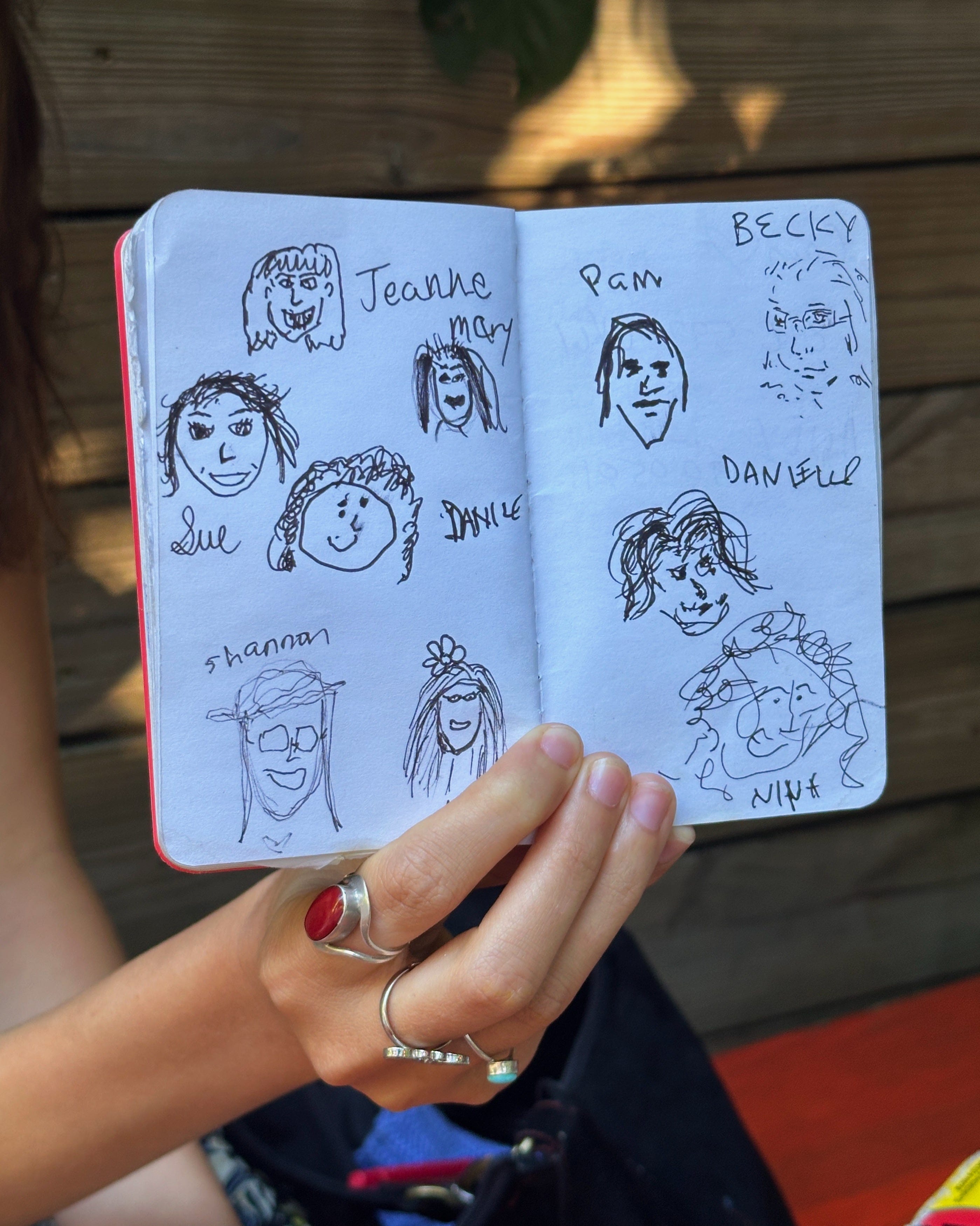 On the subject of moms, my friend showed me this page from her purse journal the other day. She passed it around at a music festival and asked everyone to draw a picture of their mom from memory.